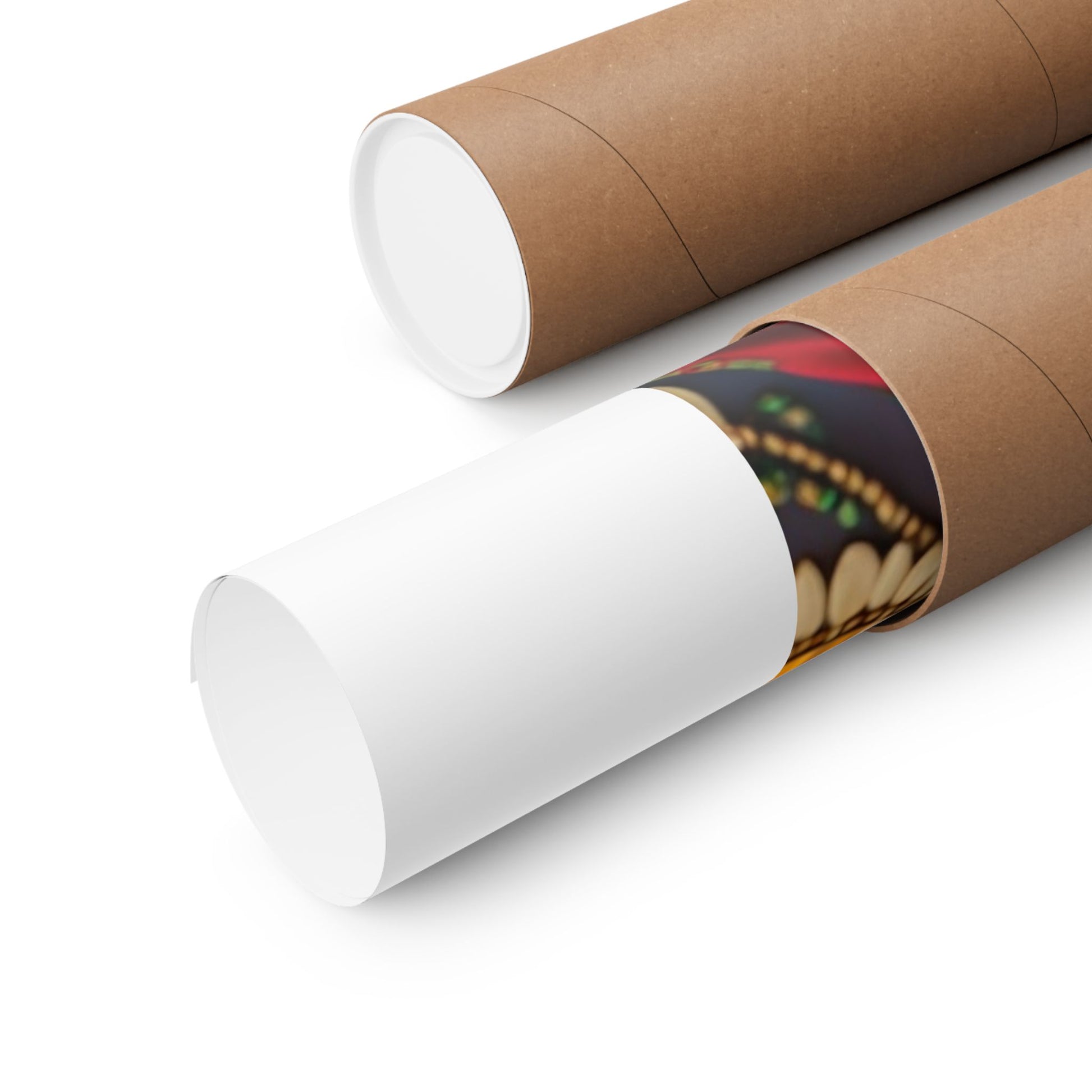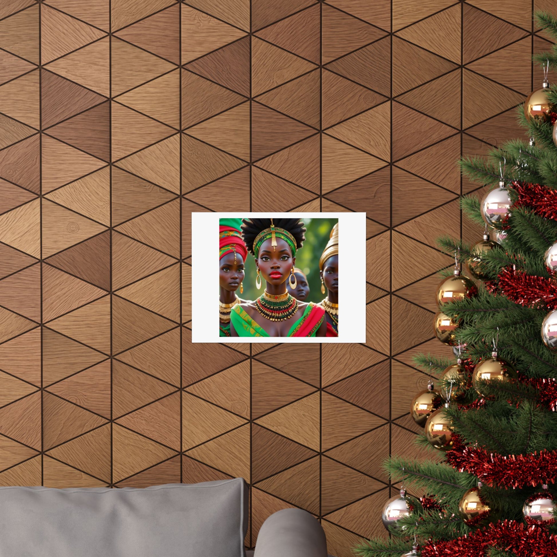 A striking matte poster that celebrates bold color, regal presence, and handcrafted adornment. Printed with museum-grade archival paper and giclée inks, this print holds deep, saturated tones and crisp detail so the jewel-like reds, greens and golds retain their intensity on a light-absorbing matte surface. Hang it in a living room gallery wall, a creative studio, or a hallway where it greets visitors with confident beauty. The portrait evokes ceremonies, lineage, and a quiet strength — a visual centerpiece that brings warmth and cultural richness to indoor spaces.