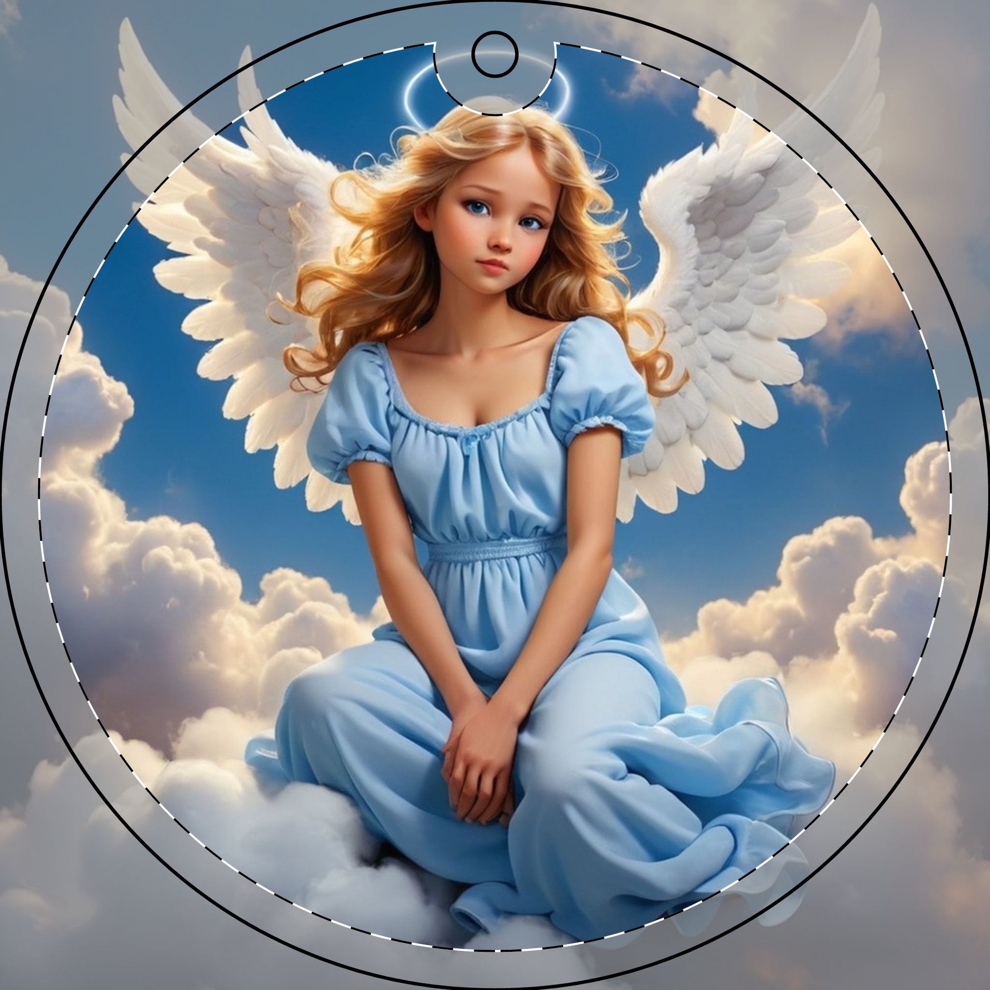 Angel In Clouds Crystal Glass Ornament – Engraved Guardian Angel Holiday Decoration
