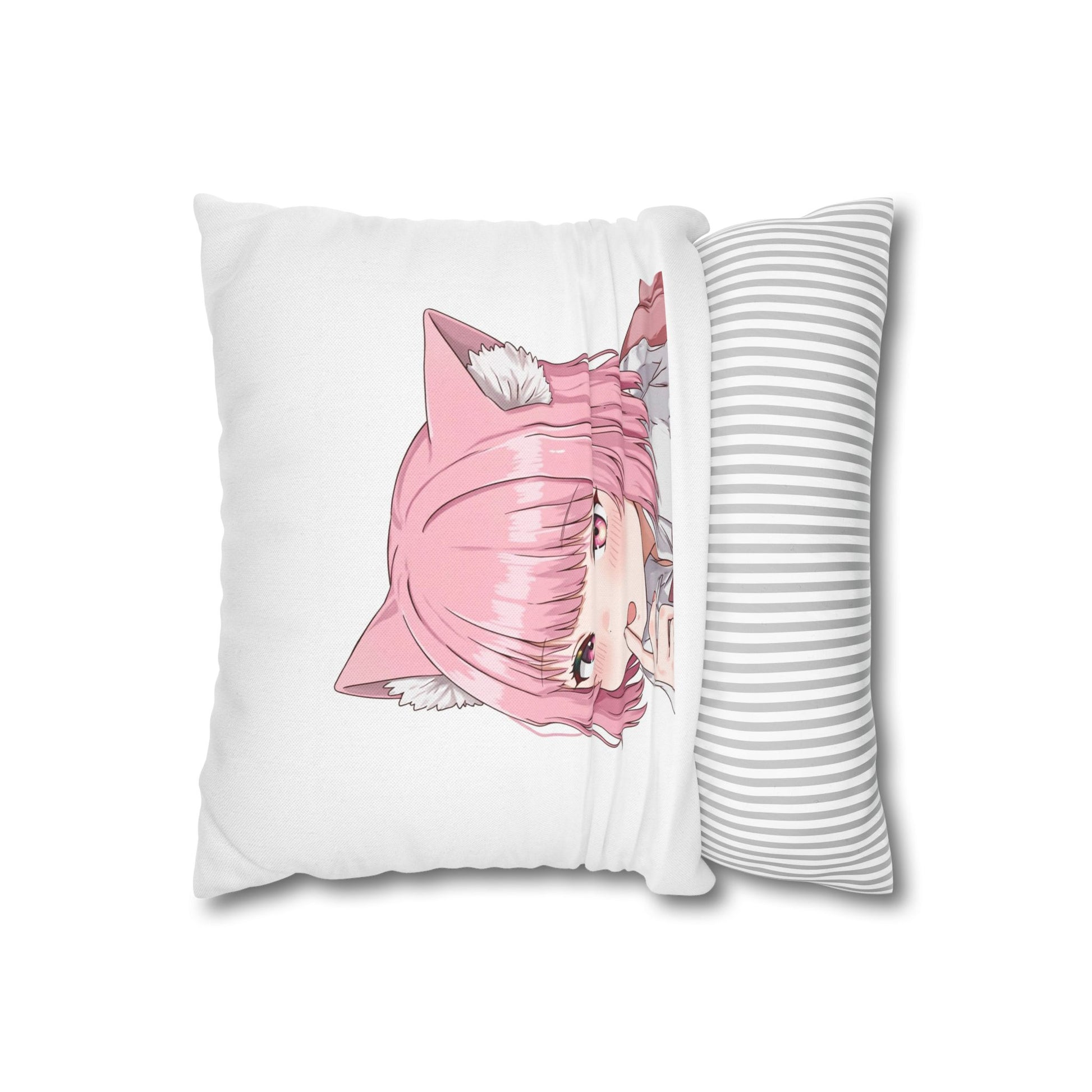 Soft, playful, and quietly expressive. This spun polyester square pillowcase features a double-sided print of a pink-haired, cat-eared anime character that brings a touch of cozy whimsy to a bedroom, reading nook, or gaming corner. The fabric keeps its shape and resists wrinkles so the art stays crisp without ironing. A concealed beige zipper keeps the look seamless while making it easy to swap in your favorite cushion (pillow insert not included). The slim, pre-constructed fit gives a neat, tailored finish and the reverse stripe detail adds a subtle contrast when the cover shifts during use. Leave it on a bed or chair to add a soft, personal accent that speaks to otaku style and relaxed, everyday comfort.