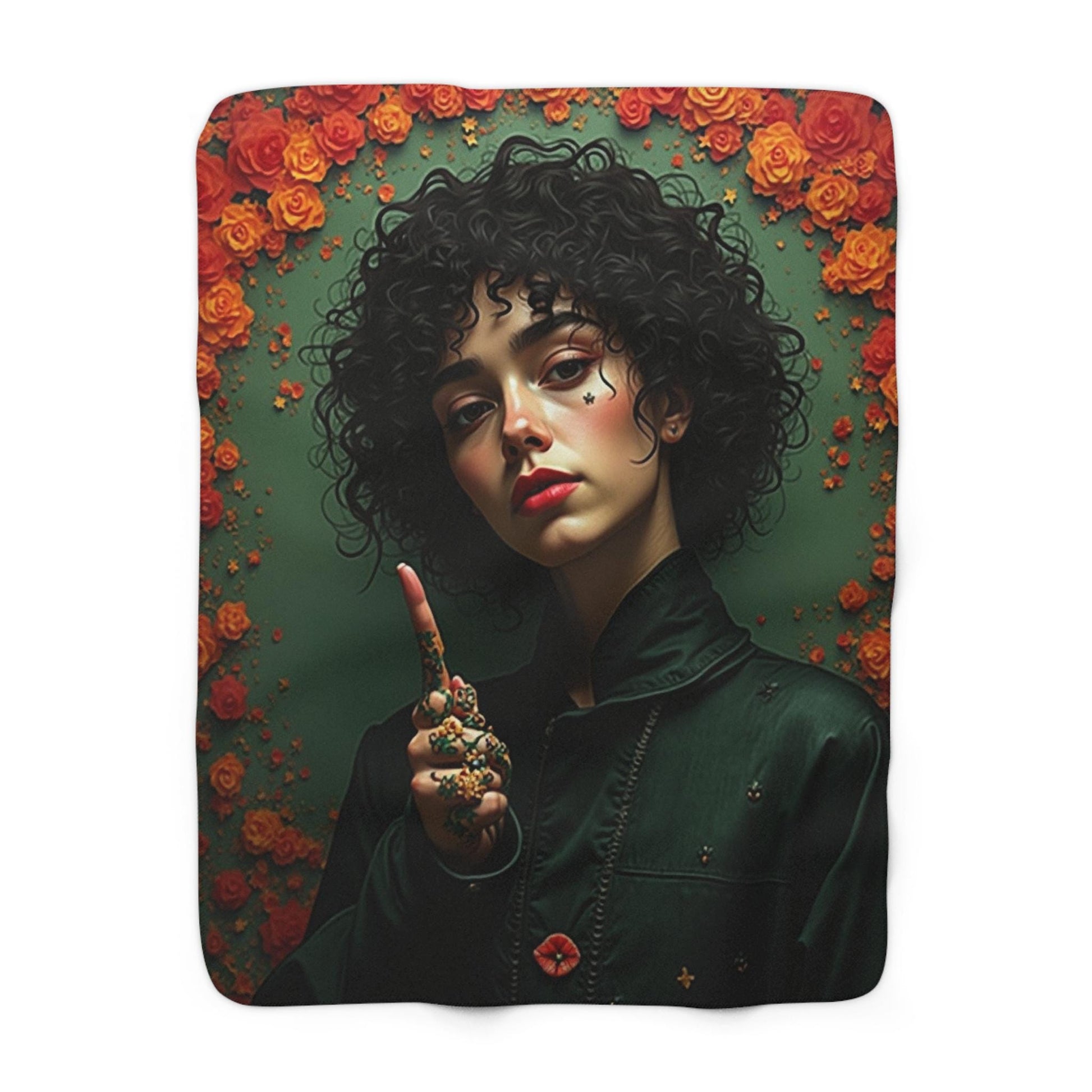 Bohemian Floral Sherpa Fleece Blanket, Cozy Throw for Home Decor, Gift for Her, Bedroom Essentials, Floral Design Blanket