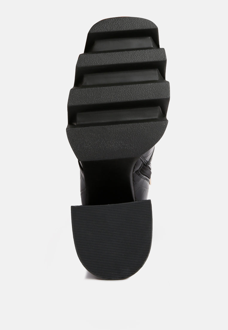 The combat boots have an elevation of the platform chunky heels which gives them a bold yet alluring look. The chunky boots are high heeled boots with soft cushion insole which support feet well. The eyelet details are accentuated and look stylish.