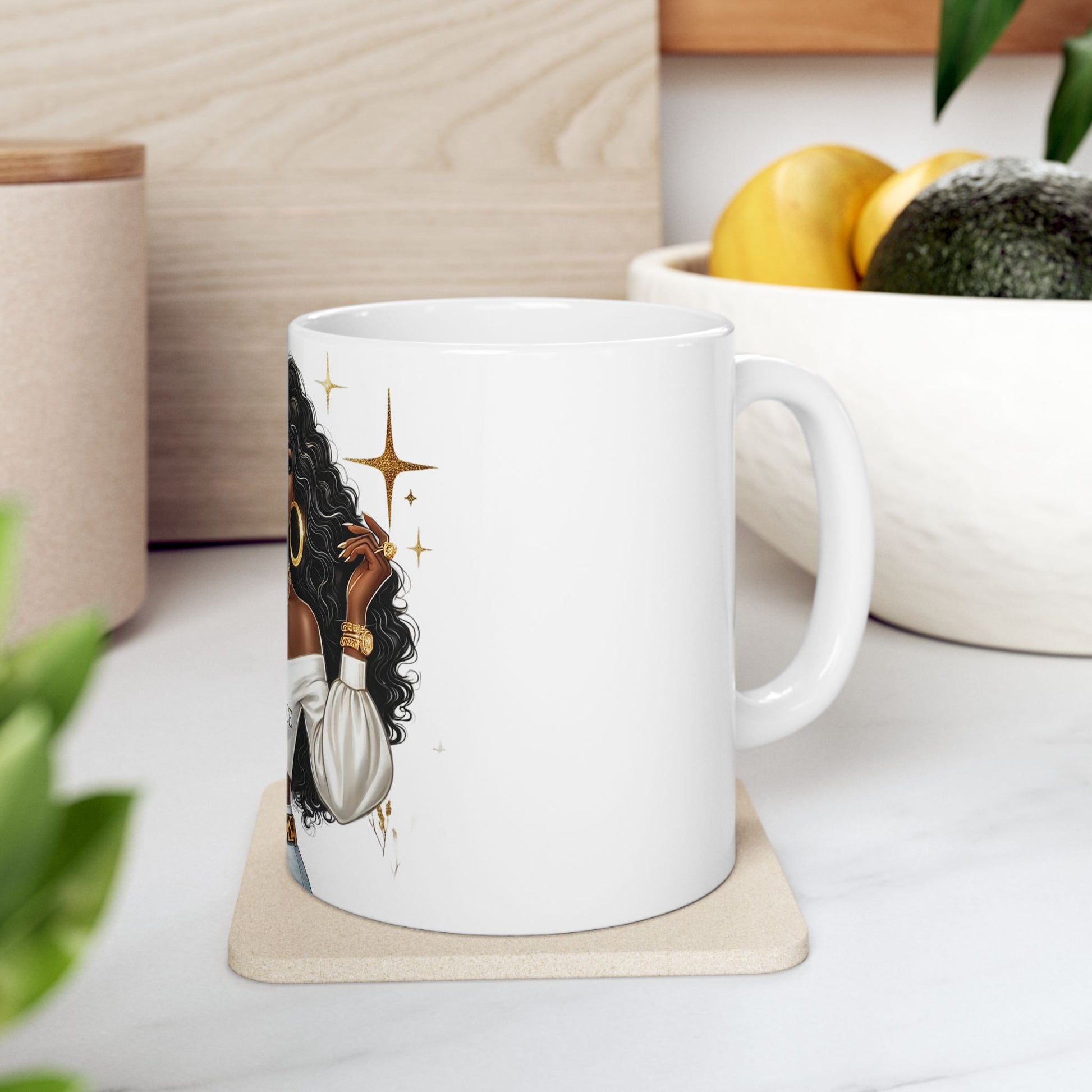 Ceramic Mug — "Rising With Grace" Black Woman Illustration Inspirational Coffee Cup (11oz, 15oz)