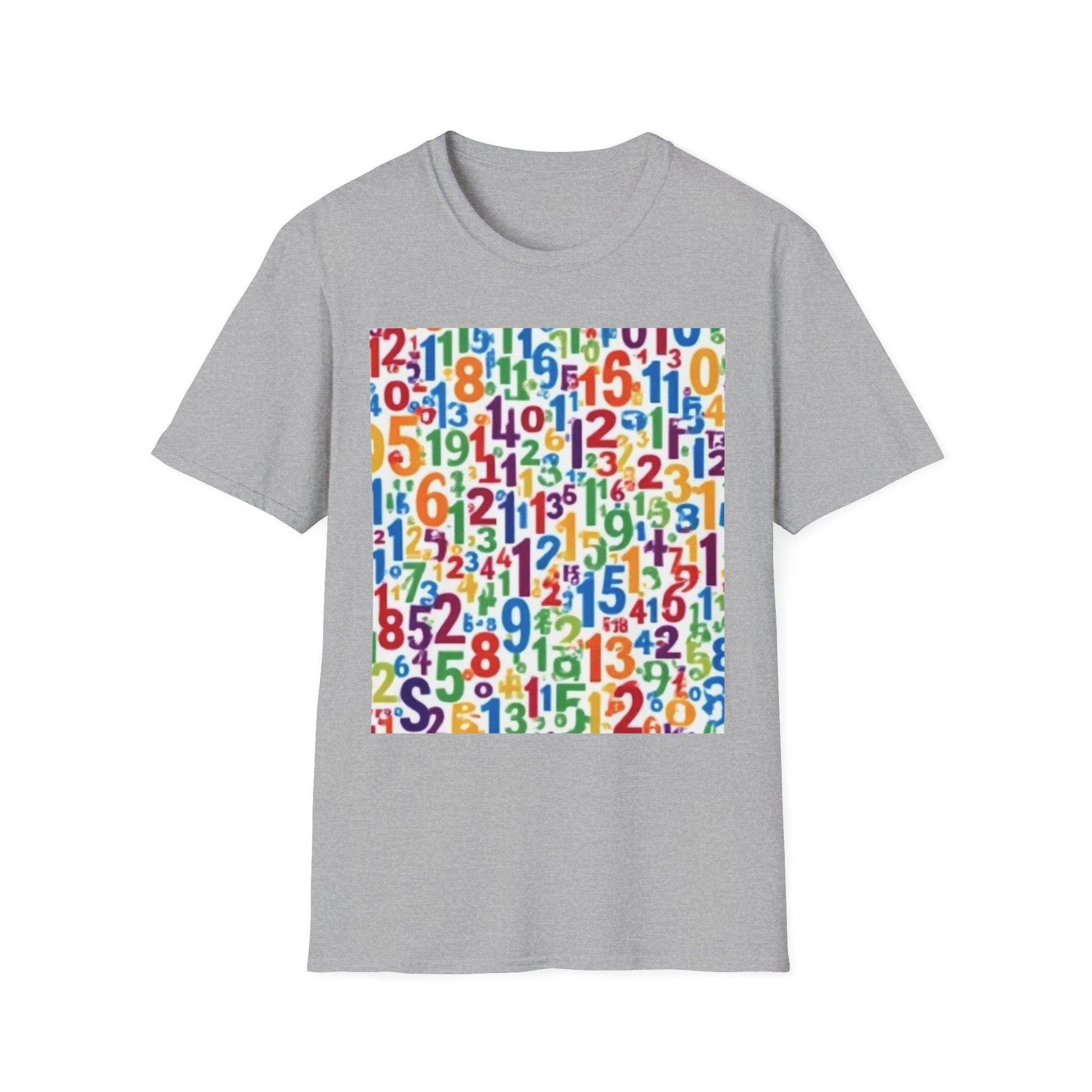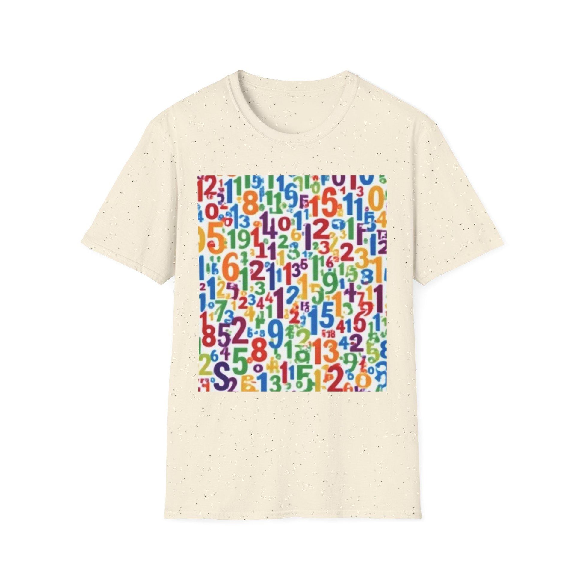 This Unisex Softstyle T-Shirt is a vibrant addition to any wardrobe, featuring a colorful array of numbers that brings a fun and cheerful vibe. Ideal for casual outings, gatherings, or cozy days at home, it effortlessly fits into a laid-back lifestyle. Perfect for adults, this shirt is a great gift for birthdays, holidays, or simply to brighten someone's day. It's versatile enough to be dressed up or down, making it suitable for various occasions like family reunions, game nights, or just everyday wear. Whether you're a child at heart or a number enthusiast, this shirt will add a splash of joy to your daily outfits. Product features - Without side seams for a clean look and reduced fabric waste. - Elastic ribbed collar retains shape and adds durability. - Shoulder tape stabilizes seams to prevent stretching. - Made from ultra-soft 100% ring-spun cotton for comfort. - Ethically sourced cotton, ensuring quality and sustainability. Care instructions - Do not dryclean - Do not bleach - Tumble dry: low heat - Iron, steam or dry: low heat - Machine wash: cold (max 30C or 90F), with similar colors