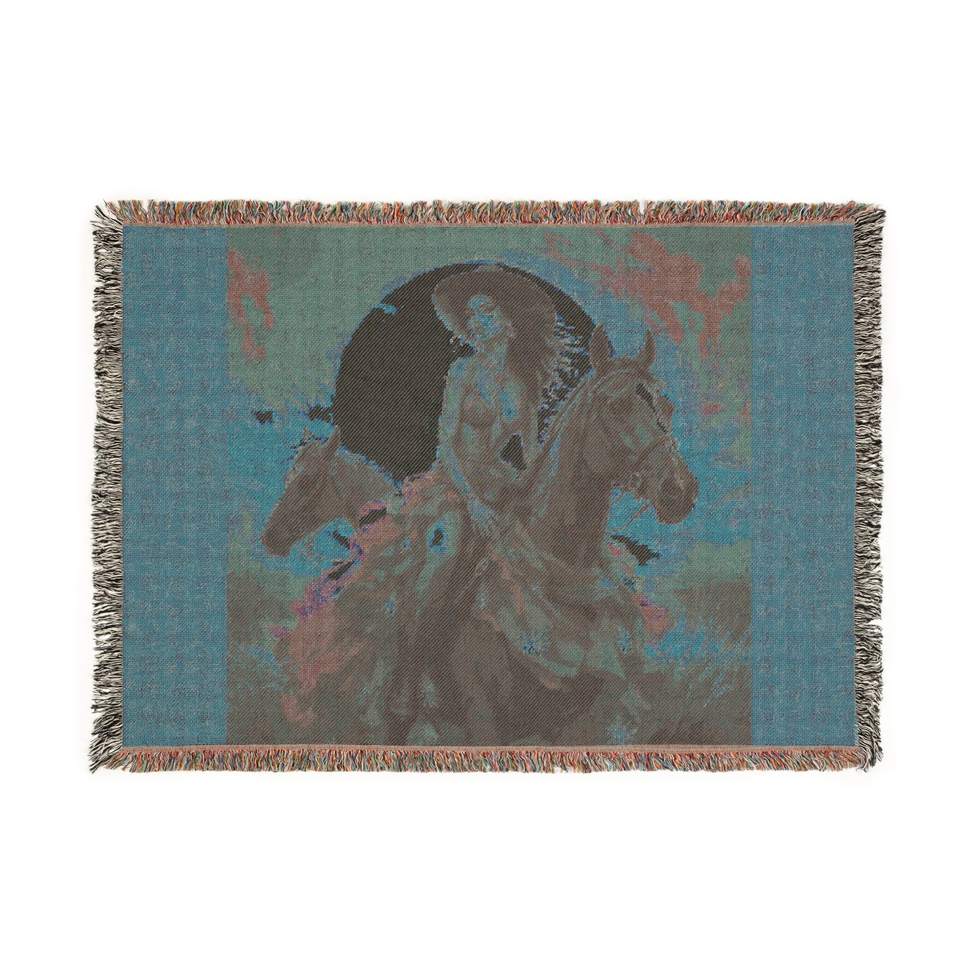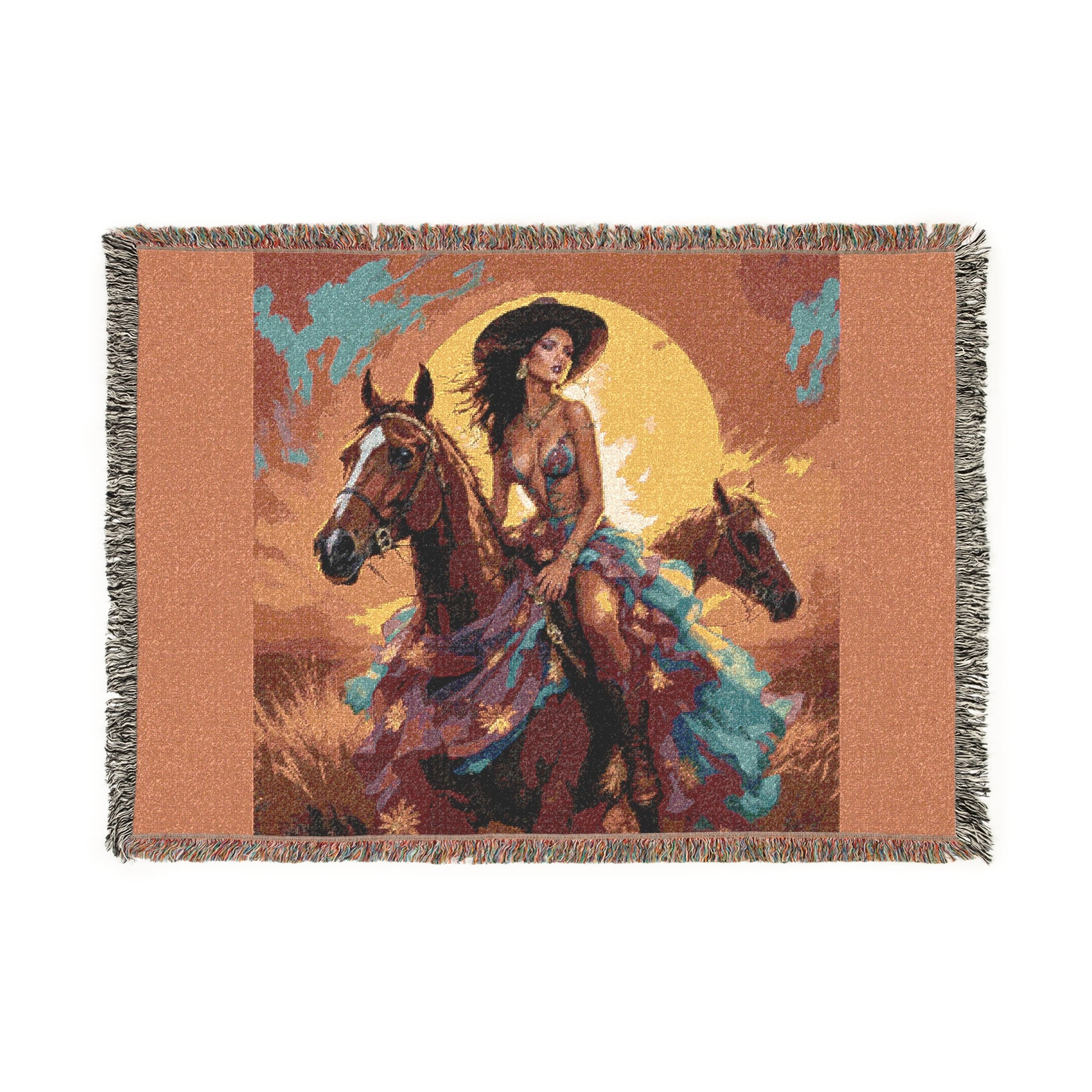Copy of Cowgirl on Horse Woven Blanket — Western Cowboy Throw Blanket