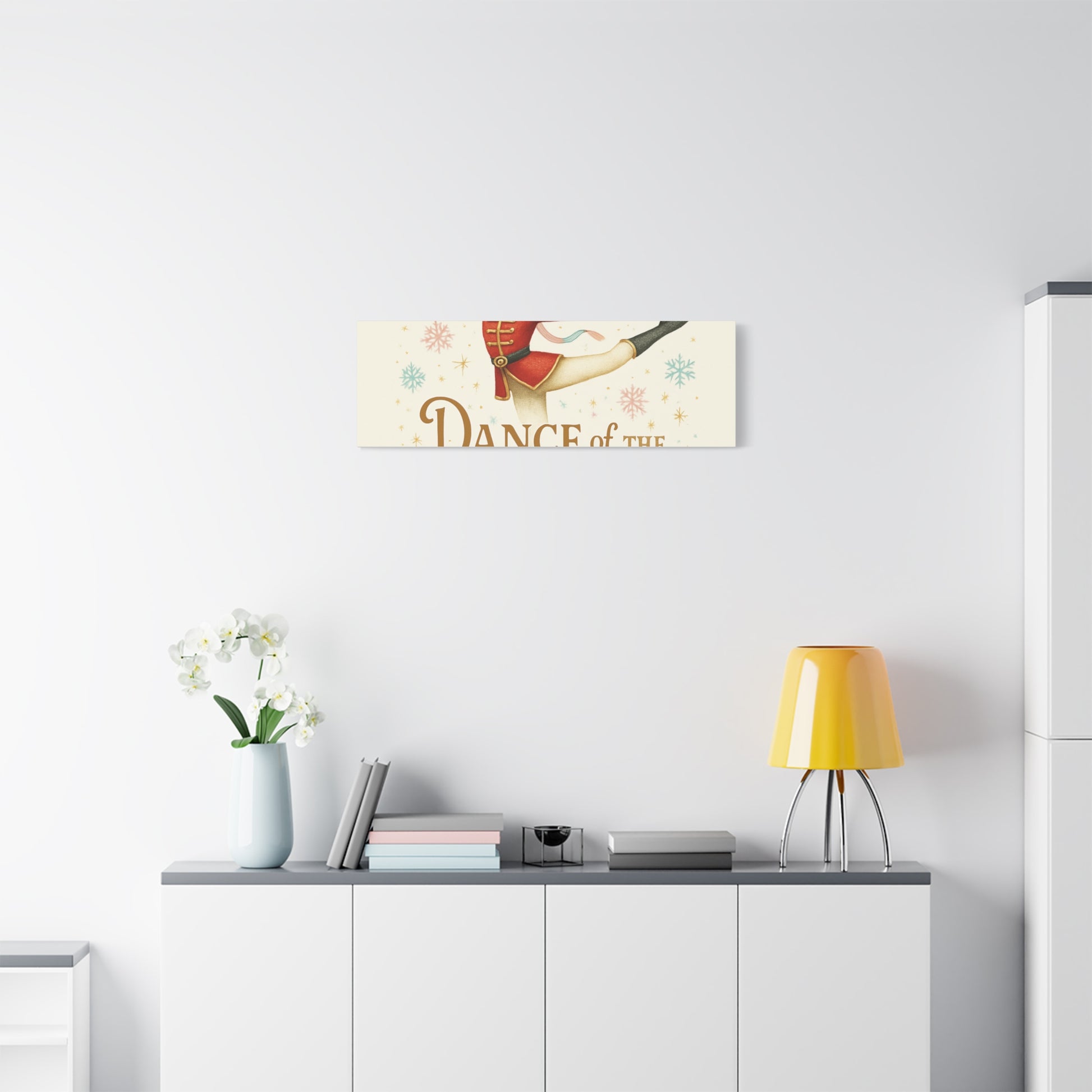 A vintage-inspired stretched canvas that brings the whimsy and warmth of a holiday ballet into your home. Soft, muted creams and rosy tones show a jaunty toy soldier mid-leap, framed by gentle snowflakes and elegant lettering that reads “Dance of the Toy Soldiers.” The matte finish keeps reflections low and the illustration feels like an heirloom poster — nostalgic but fresh. Lightweight yet sturdy, it arrives ready to hang so you can tuck it into a cozy mantel vignette, a child’s nursery wall, or a seasonal gallery without fuss. It’s the kind of piece that sparks stories, invites second glances, and adds a quiet, festive charm to any room.