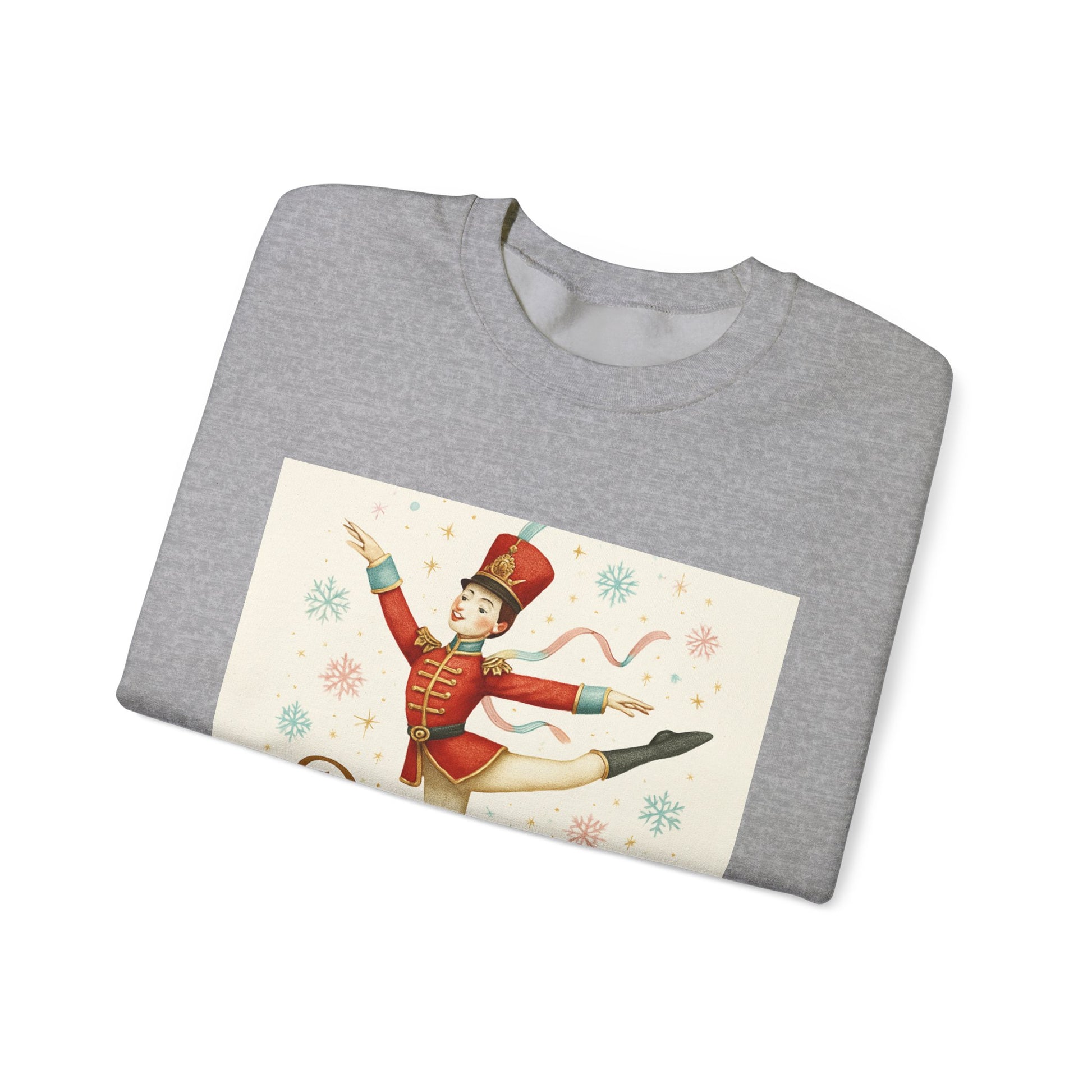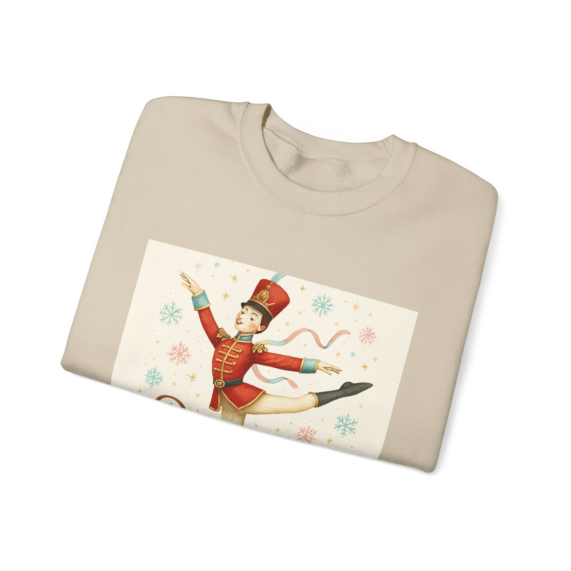 Wrap yourself in a quiet, nostalgic moment with this cozy crewneck featuring a vintage-inspired “Dance of the Toy Soldiers” illustration. Soft cream fabric sets a warm stage for the playful soldier mid-leap, surrounded by gentle snowfall and artful lettering. It feels like stepping into an old holiday storybook — the kind of sweatshirt you reach for when you want comfort and a little seasonal magic without shouting for attention. Wear it to rehearsals, holiday markets, or slow mornings with cocoa; it settles easily into lives that celebrate tradition, movement, and small rituals.