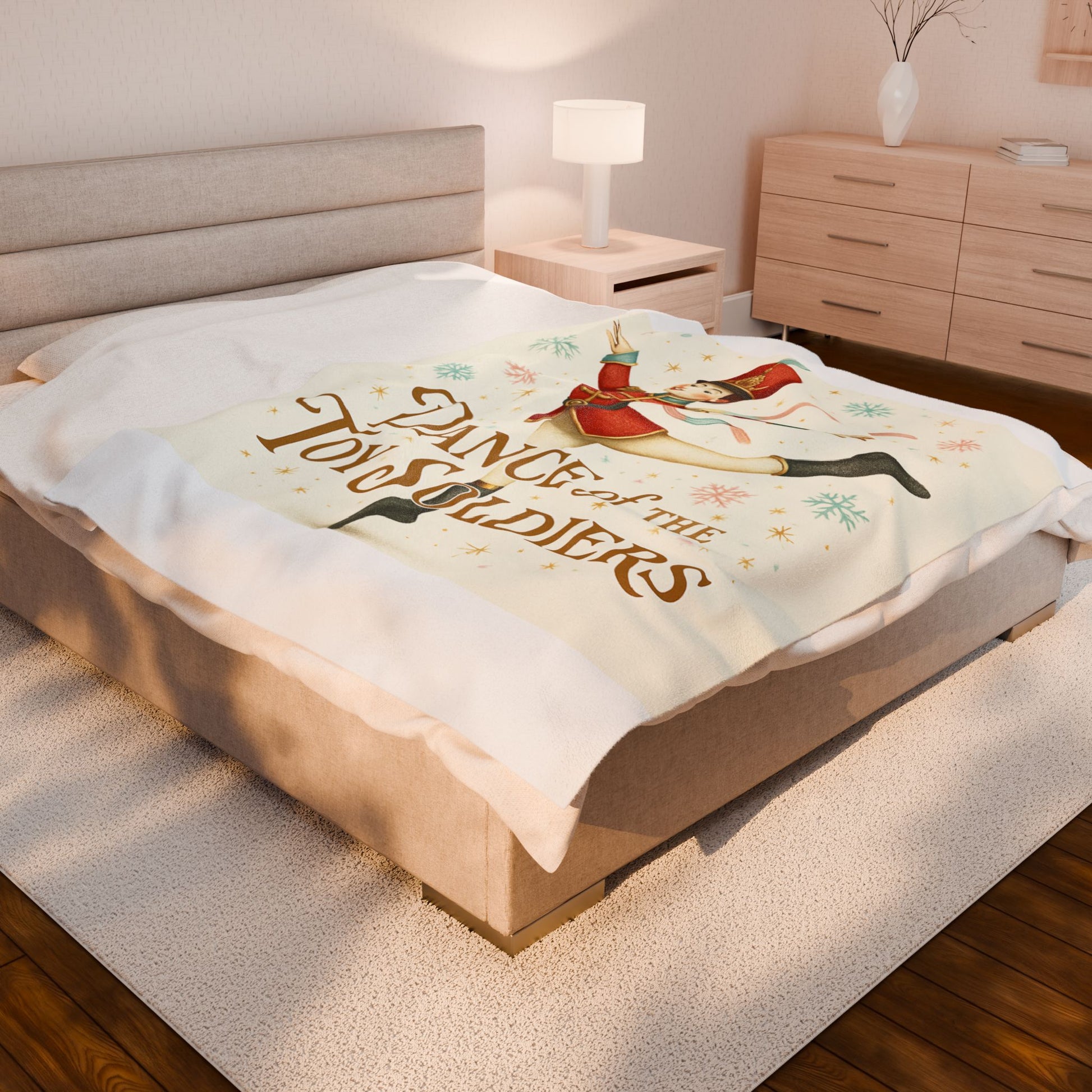 Dance of the Toy Soldiers Velveteen Plush Blanket — Vintage Nutcracker Holiday Throw