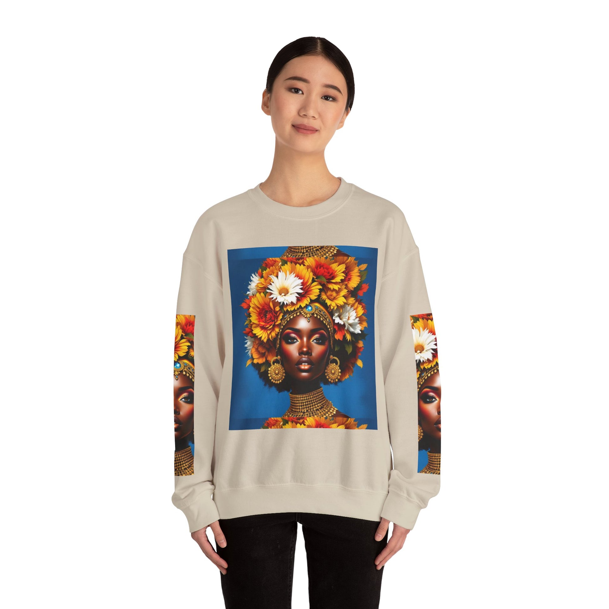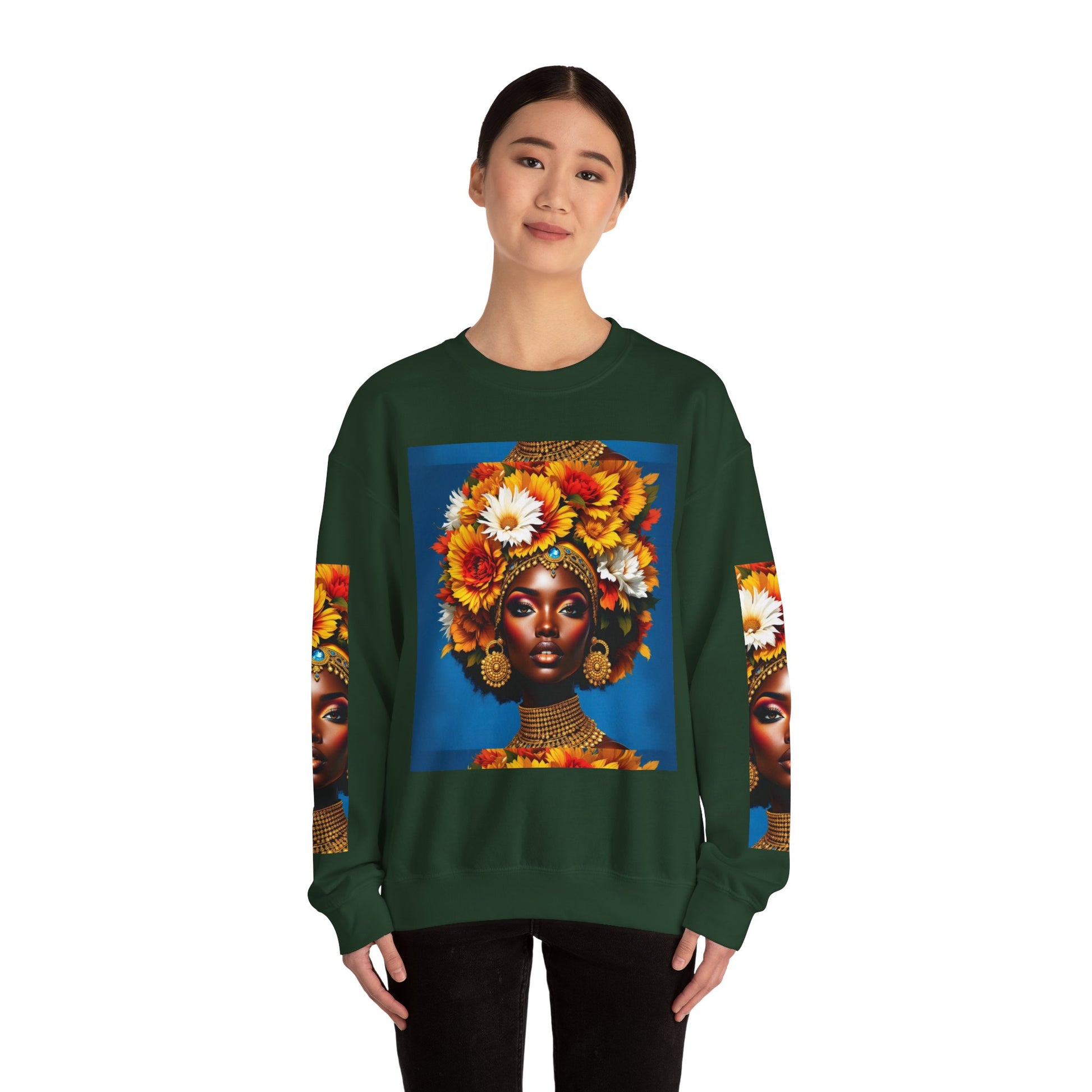 Introducing a stylish and comfortable Unisex Heavy Blend™ Crewneck Sweatshirt, designed for those who embrace creativity and individuality. This sweatshirt radiates a vibrant atmosphere, inspired by striking artwork that signifies beauty and strength. Perfect for casual outings, cozy nights in, or as a thoughtful gift, it's a versatile piece for various occasions. It's ideal for art lovers, fashion enthusiasts, and anyone seeking a unique addition to their wardrobe. Celebrate birthdays, holidays, and special moments with this standout piece, making it a great choice for friends and family alike.