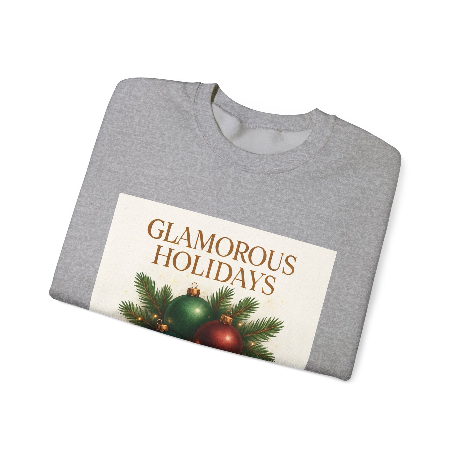 Soft and quietly festive, this crewneck wraps familiar holiday glamour in a cozy everyday silhouette. A cascade of glossy ornaments nestles in evergreen sprigs beneath the warm, retro-inspired type that reads “GLAMOROUS HOLIDAYS.” Lightweight yet substantial, the sweatshirt holds its shape and embroidery options cleanly — whether you choose a subtle left-chest stitch or a bolder center placement. Wear it to slow mornings by the tree, gingerbread nights with friends, or to add a polished seasonal touch while running errands. The neutral backdrop keeps the colors of the ornaments vivid, so the design reads like a small, wearable holiday tableau that feels personal and thoughtfully made.