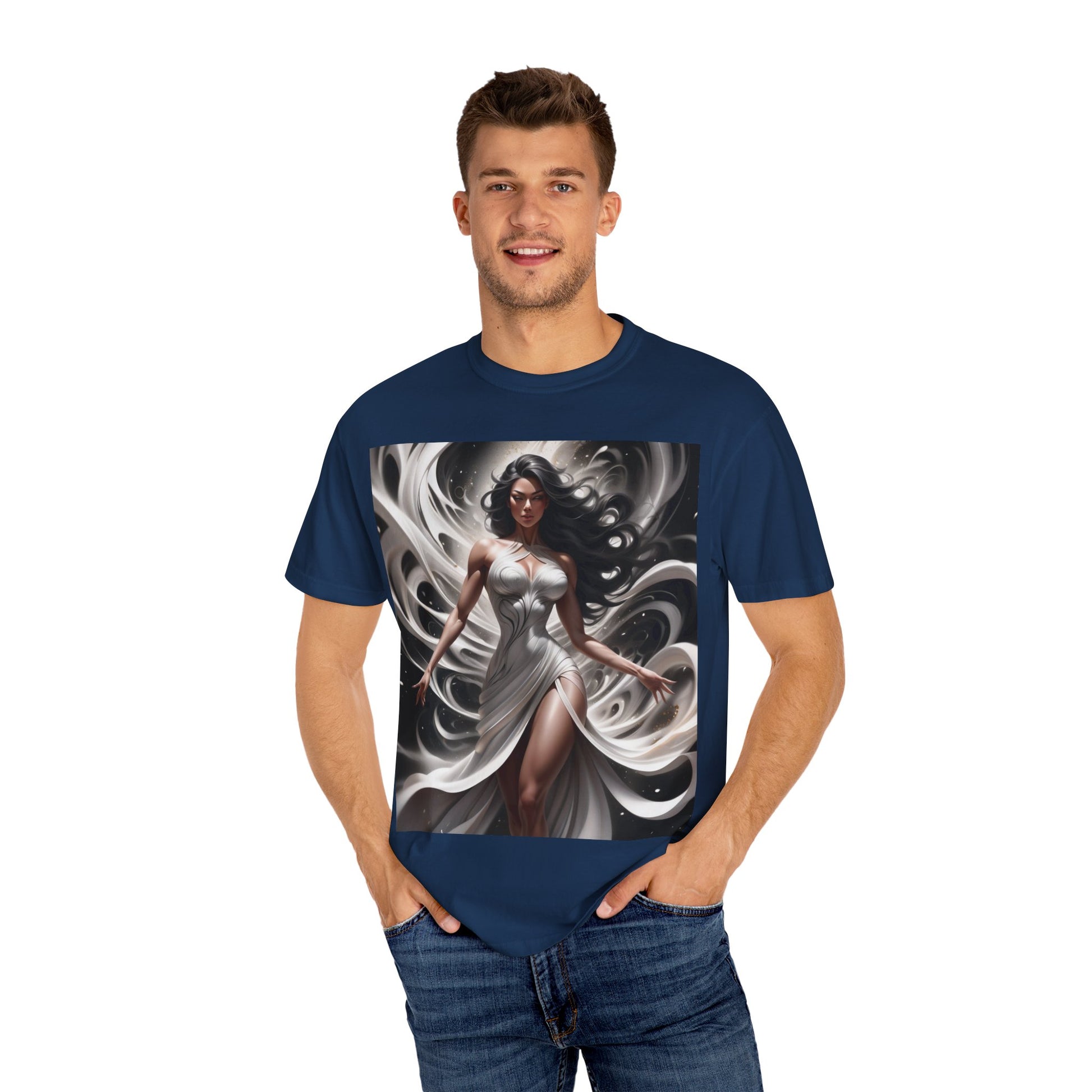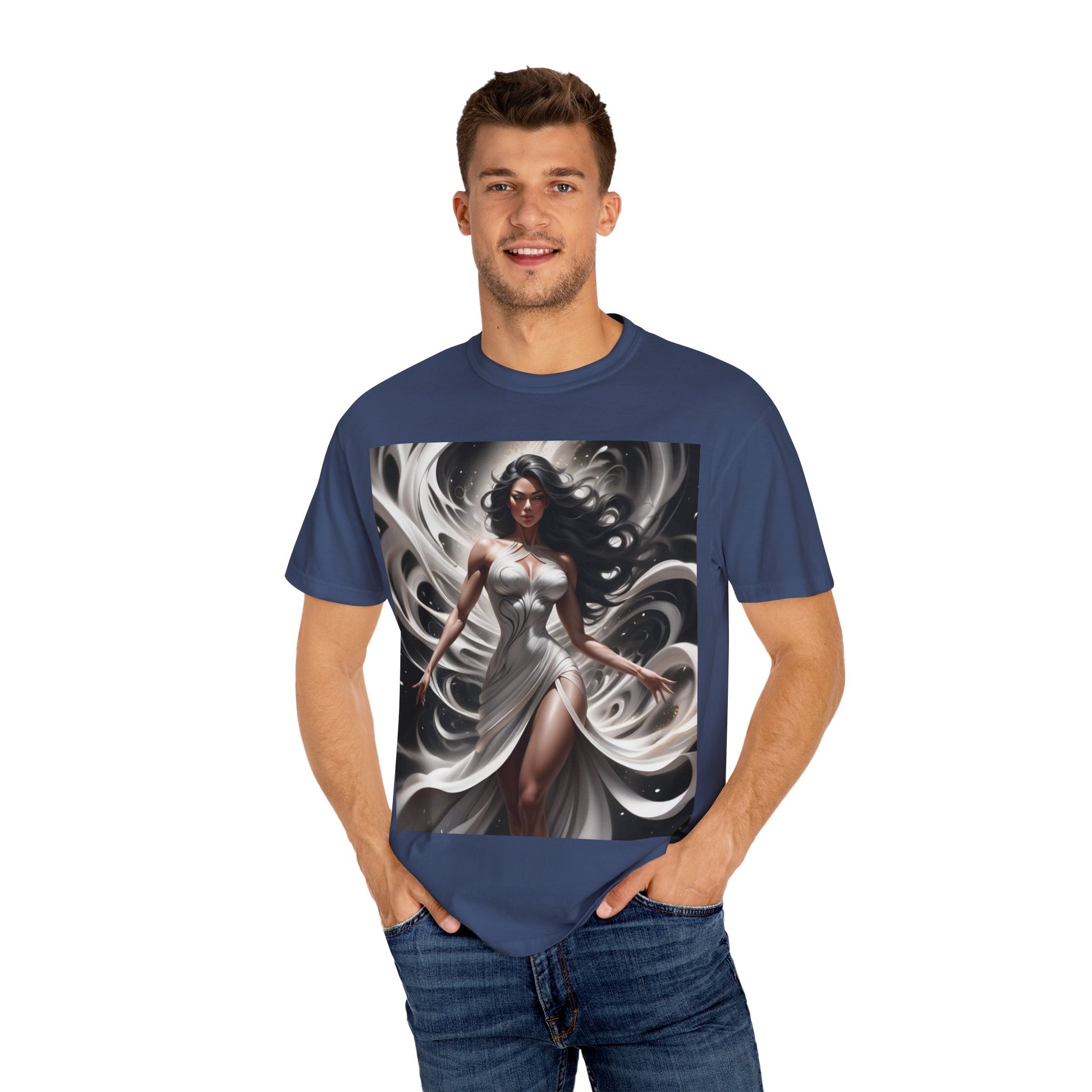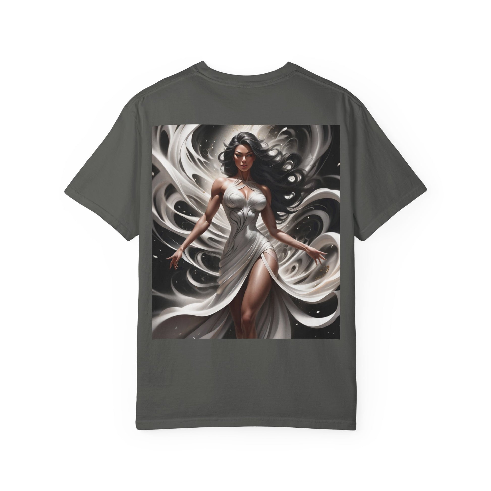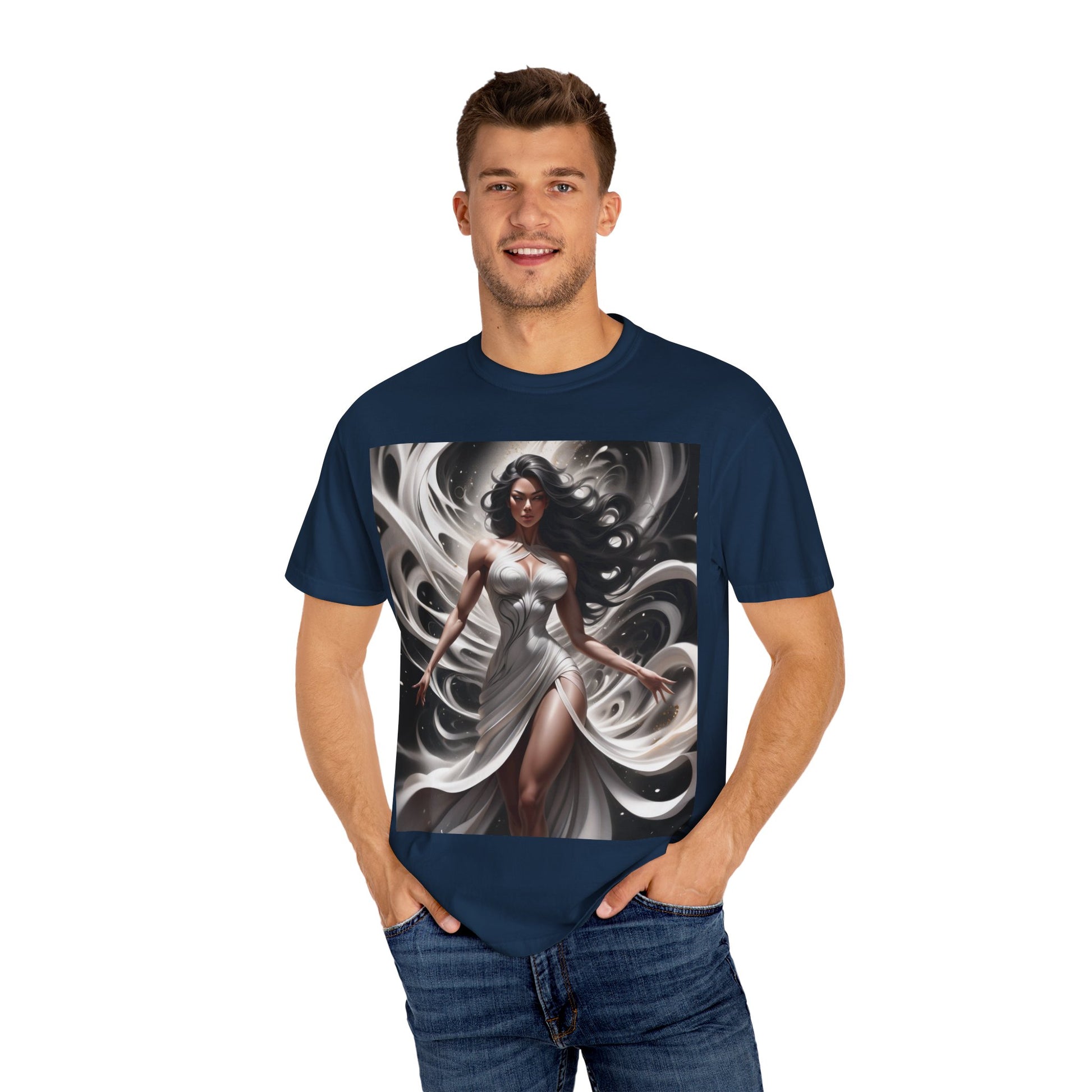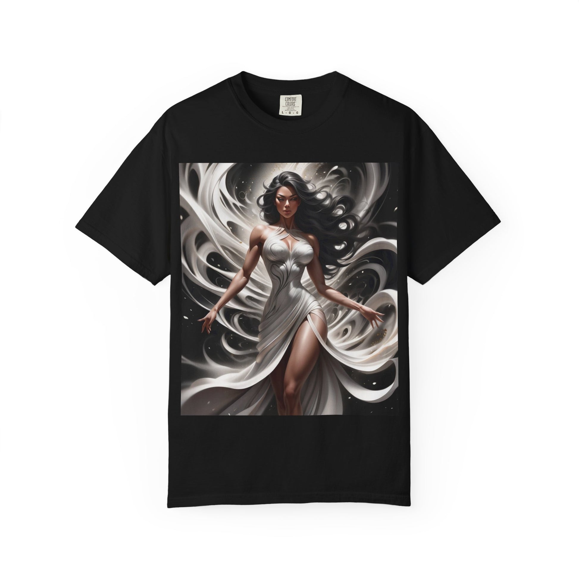 Goddess Art T-Shirt — Elegant White-Draped Fantasy Woman Print