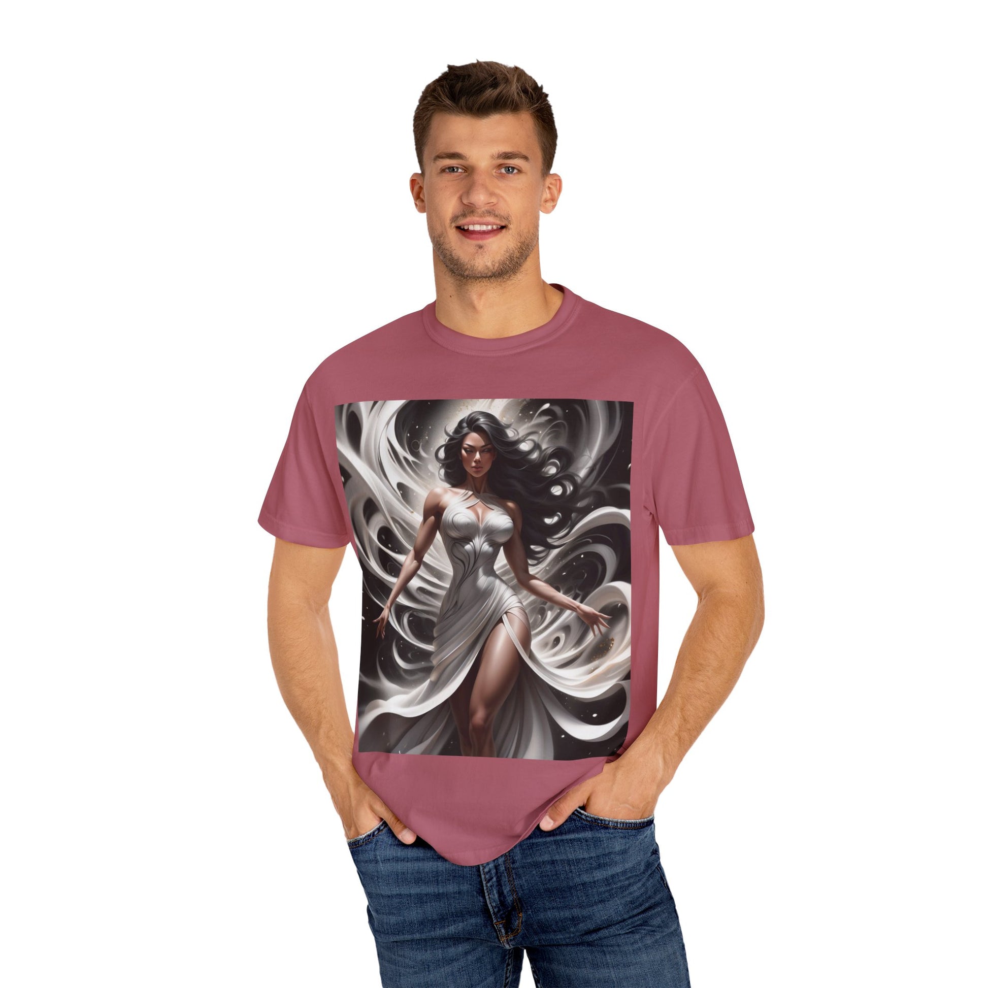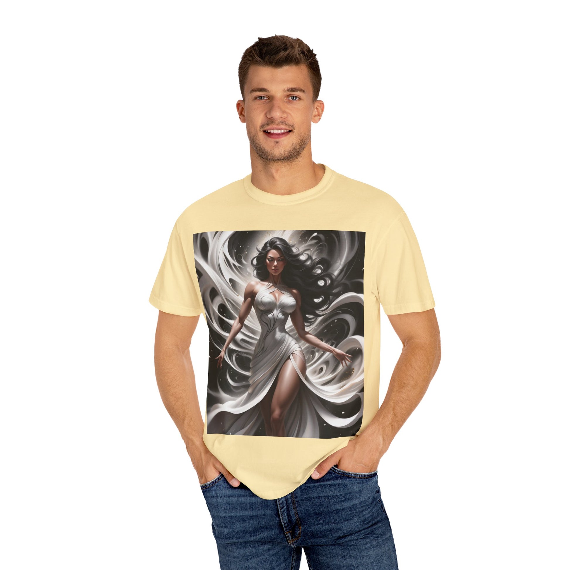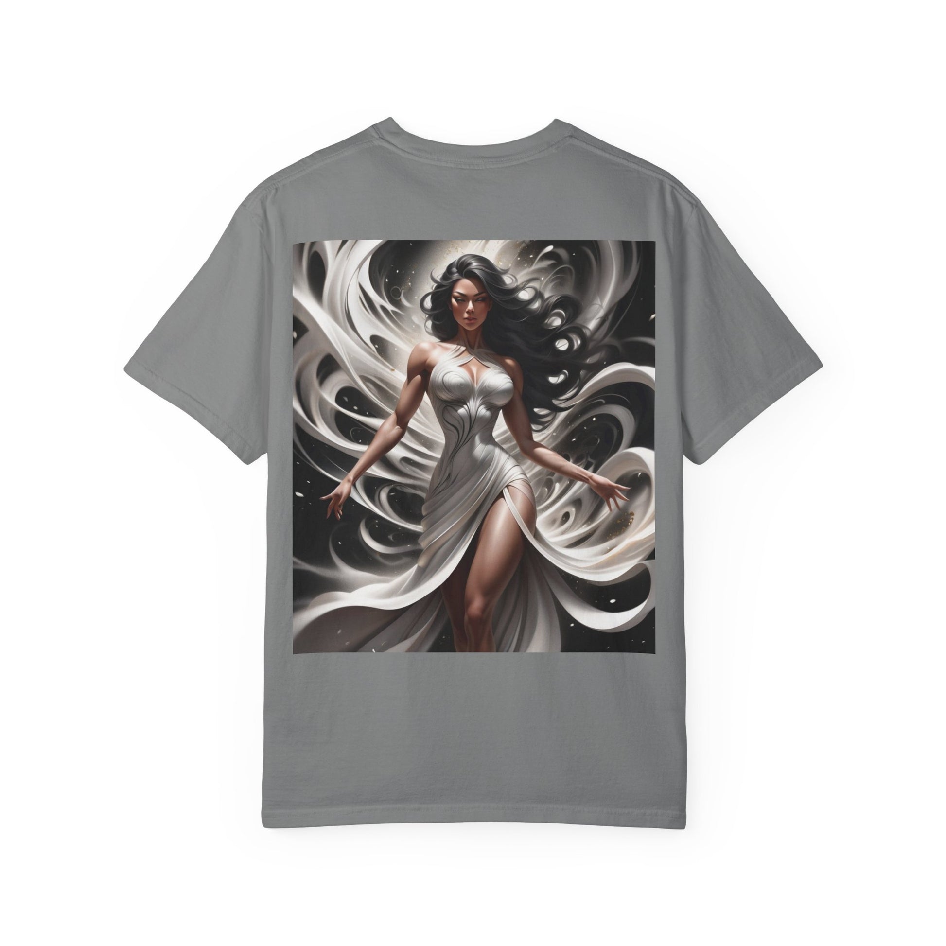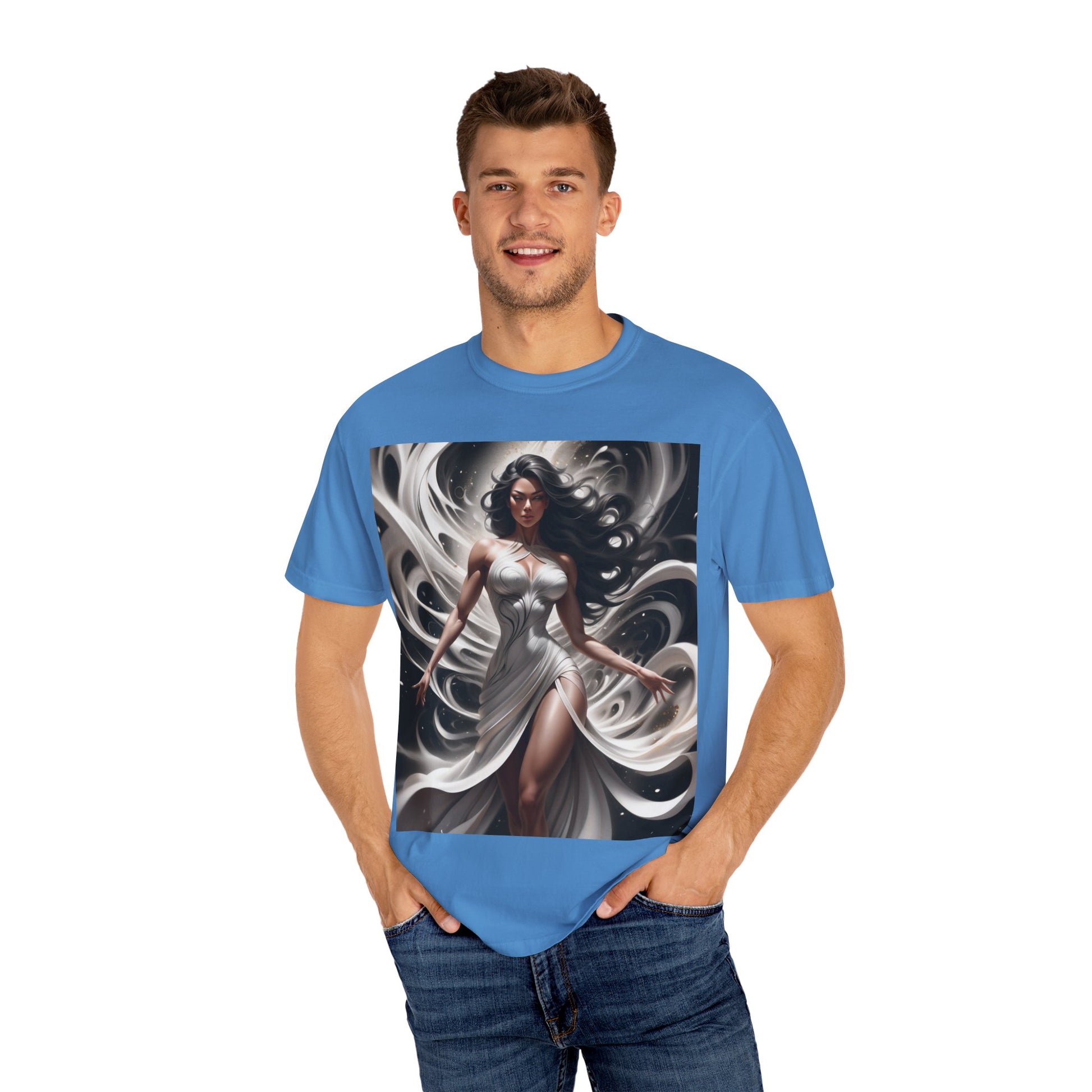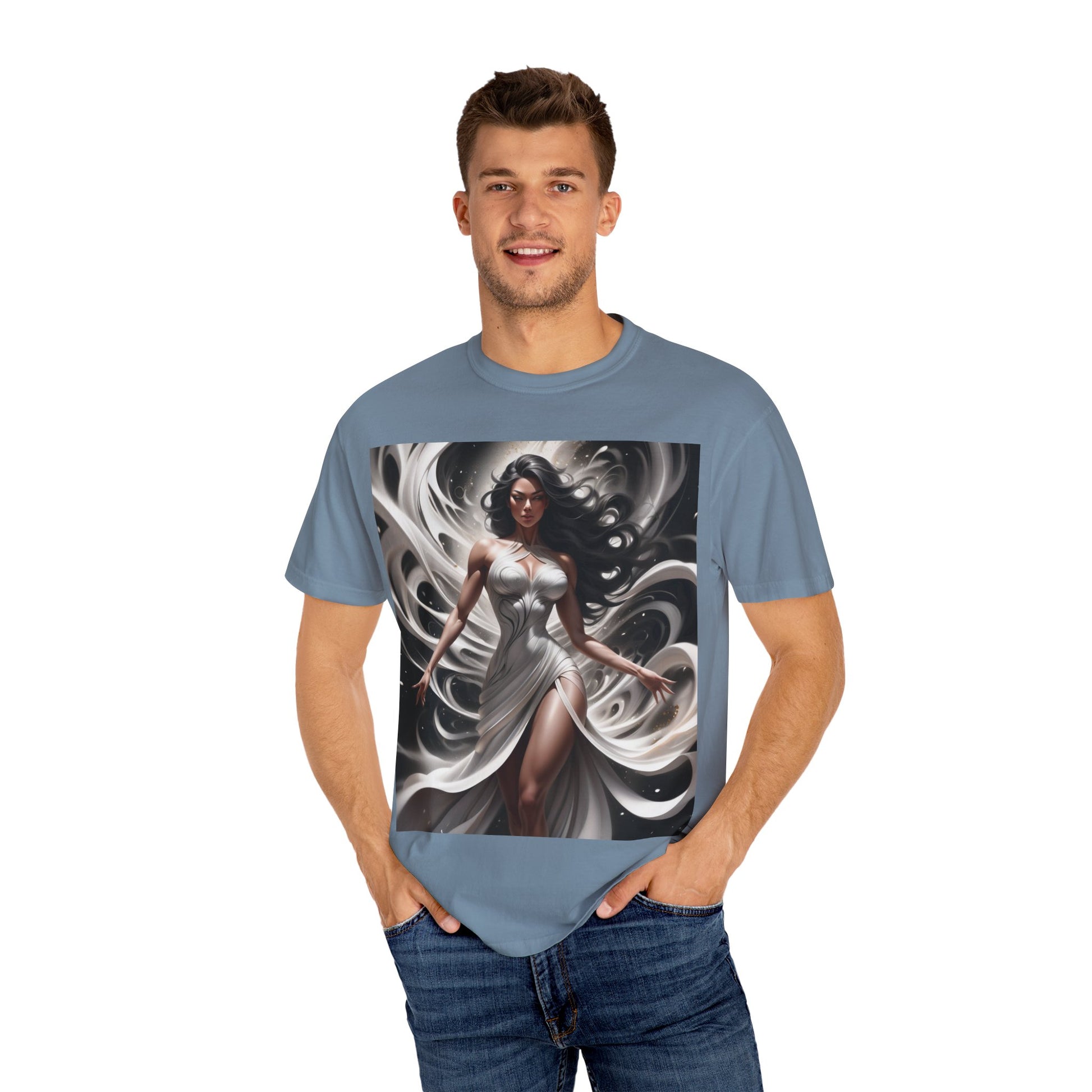 Goddess Art T-Shirt — Elegant White-Draped Fantasy Woman Print