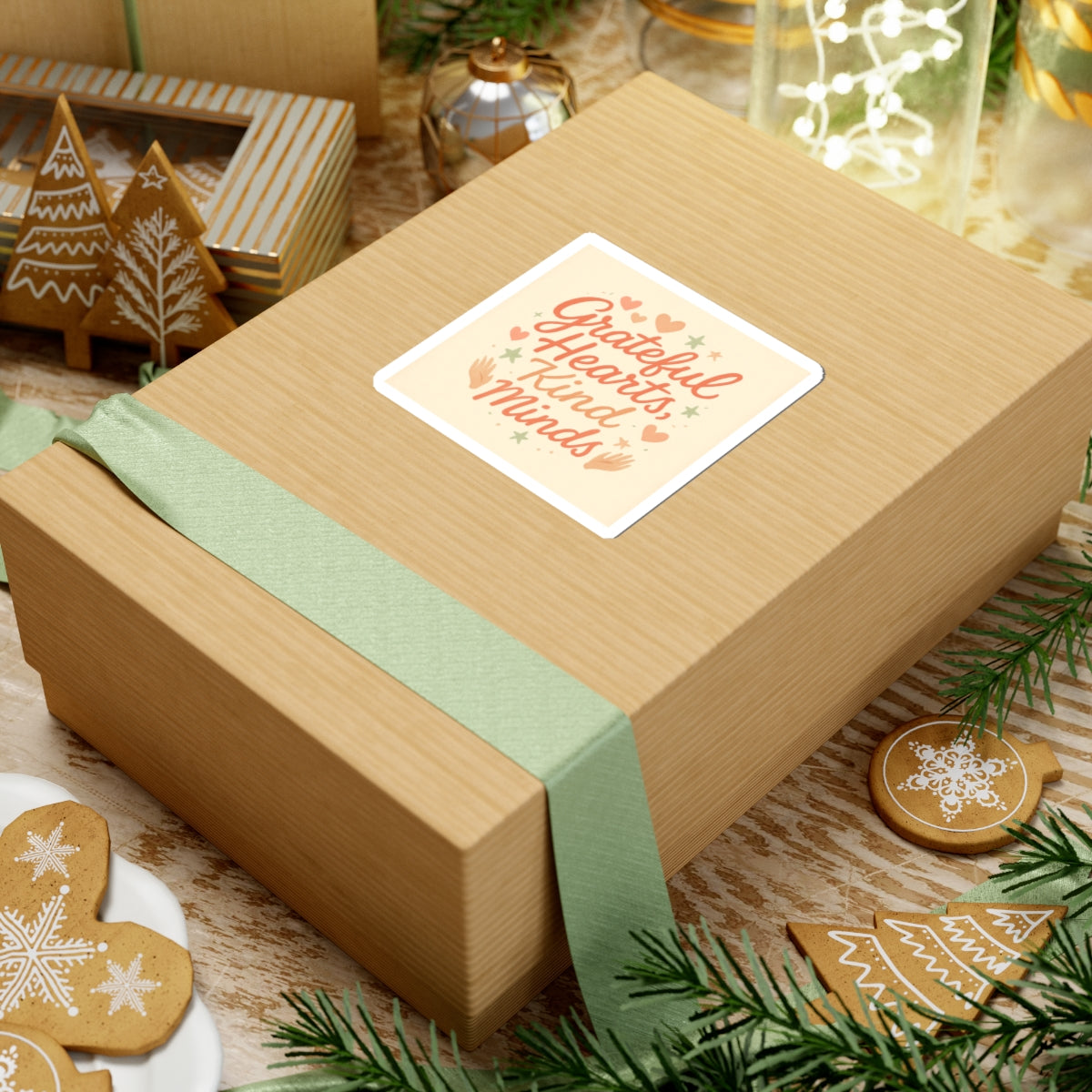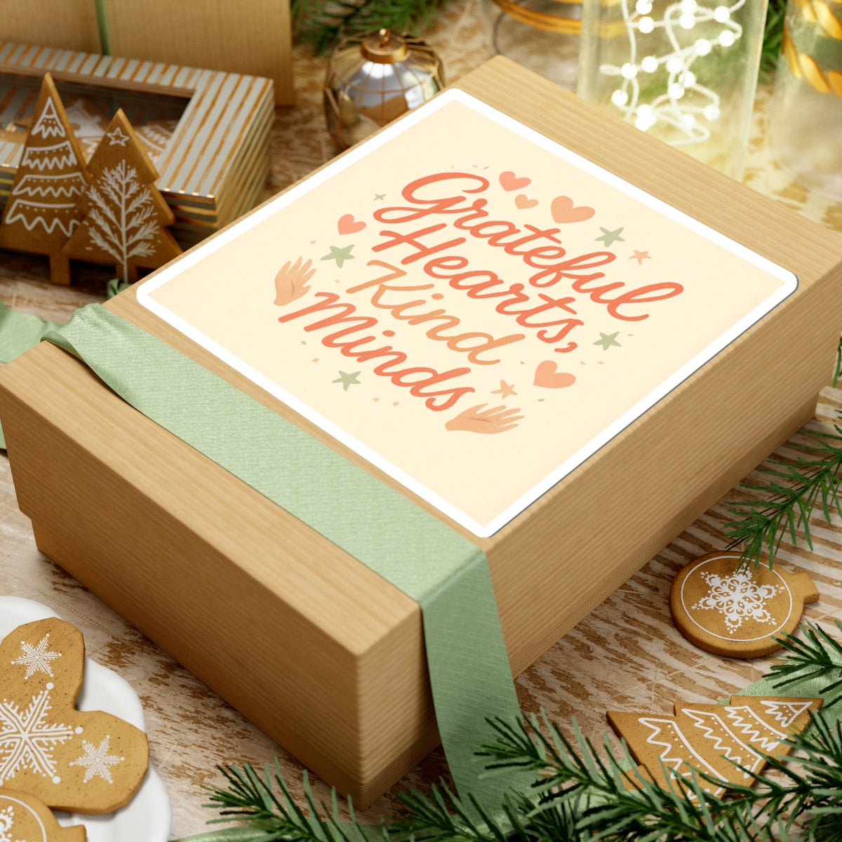 Grateful Hearts, Kind Minds Kiss-Cut Sticker — Inspirational Positive Message Decal