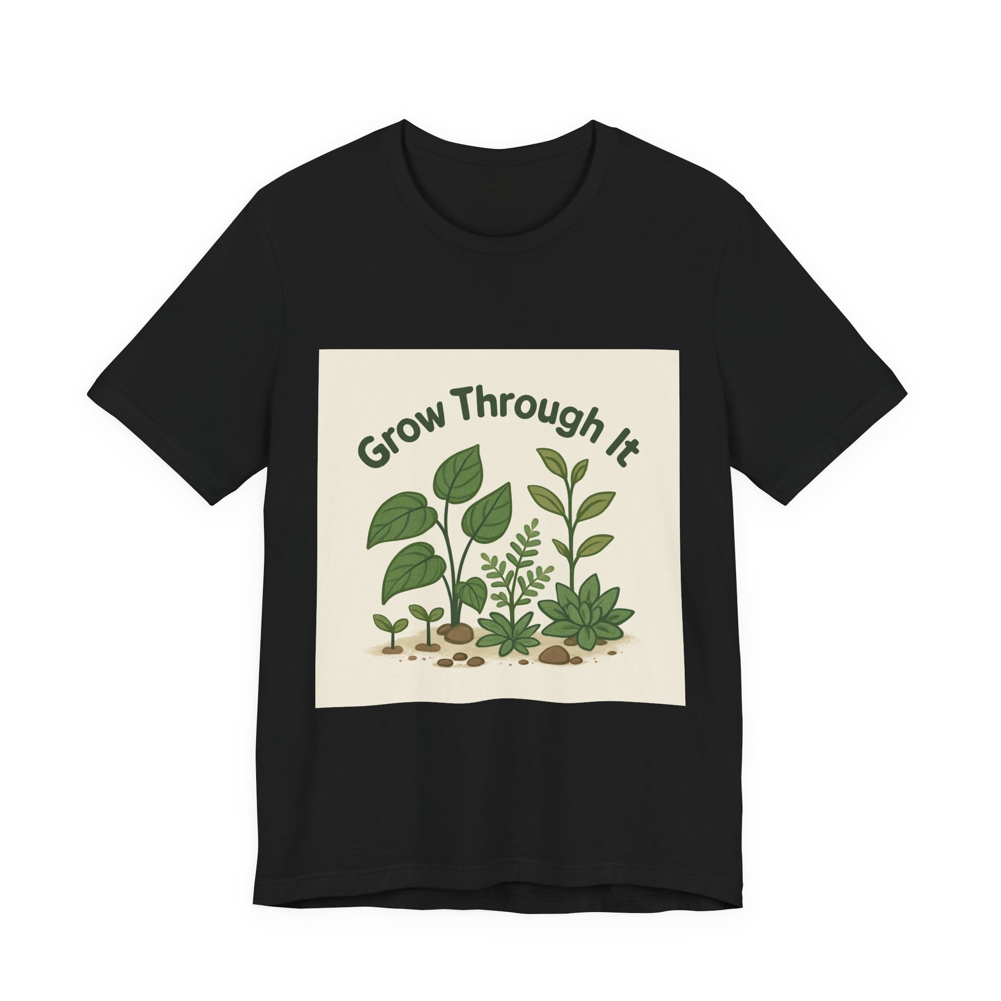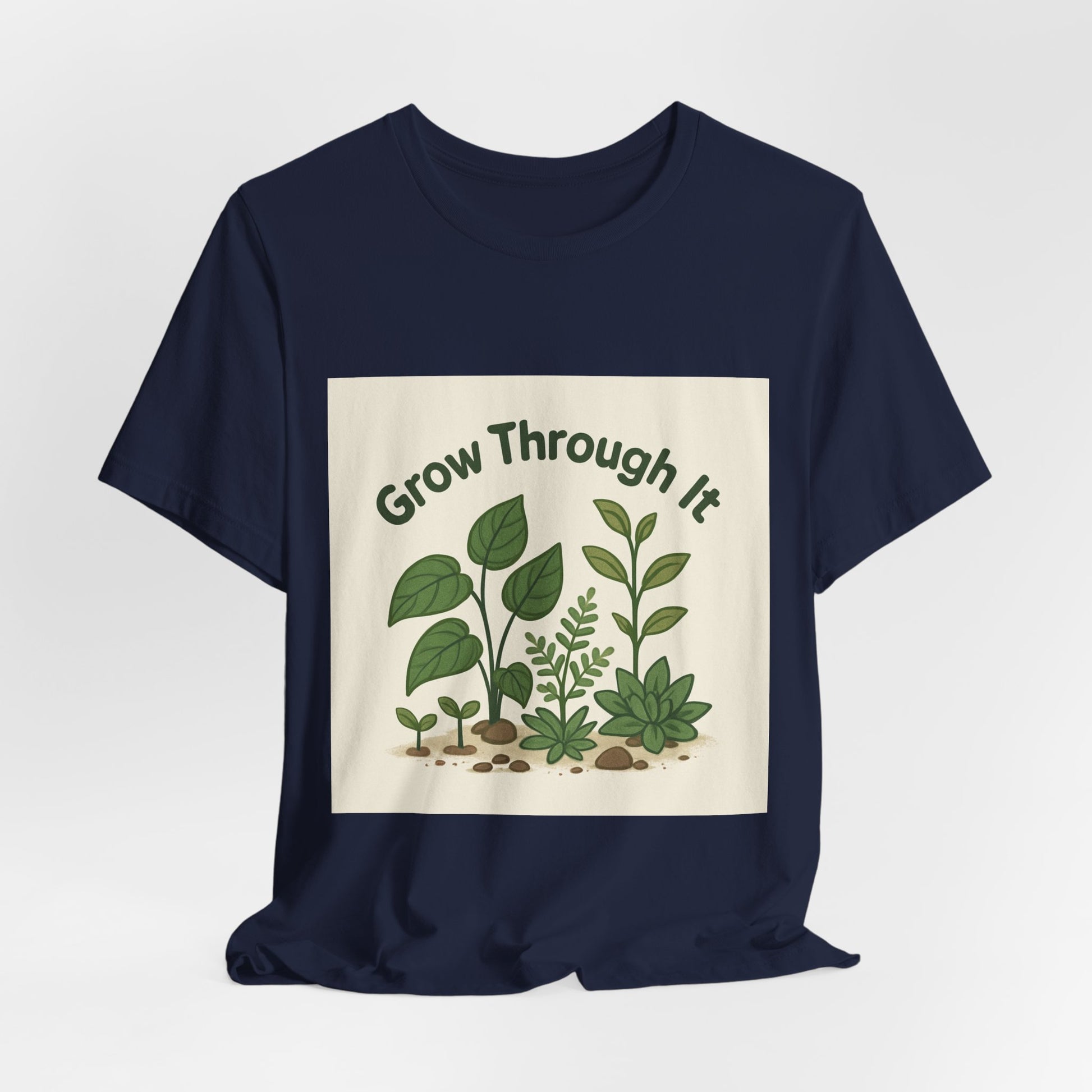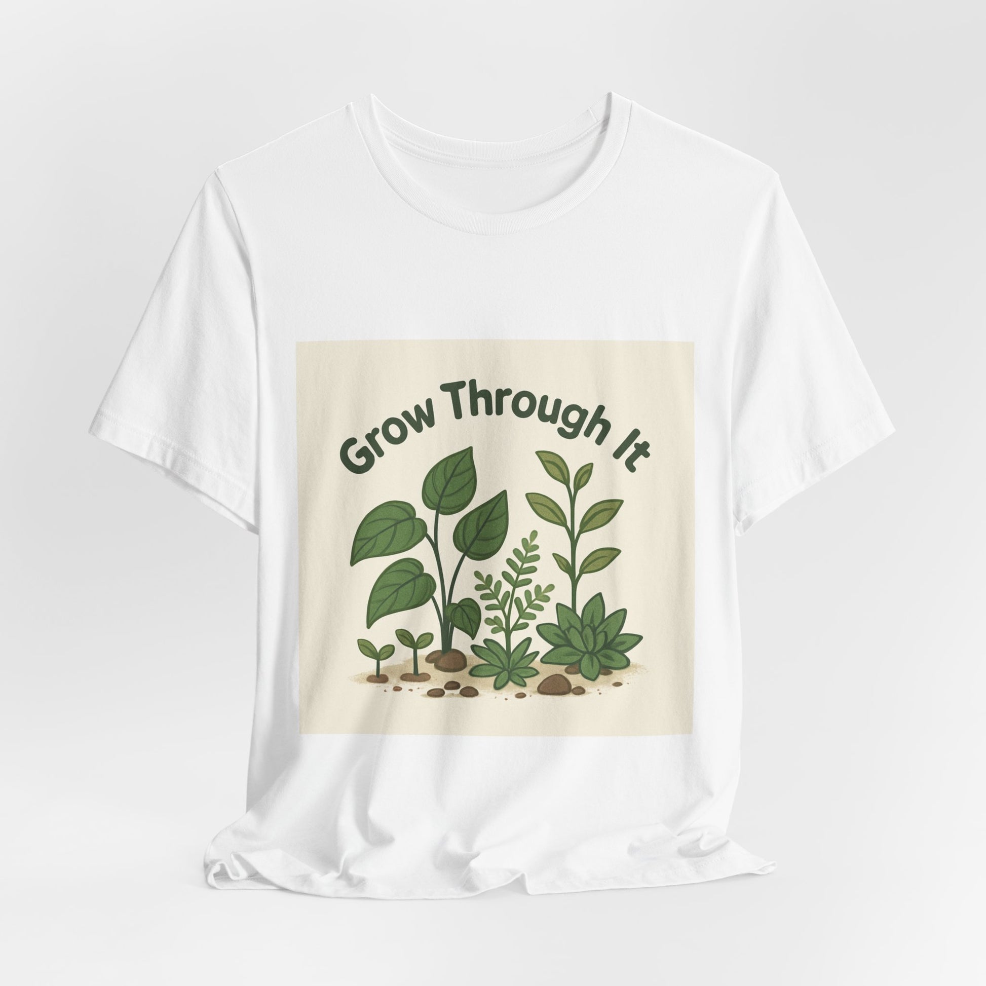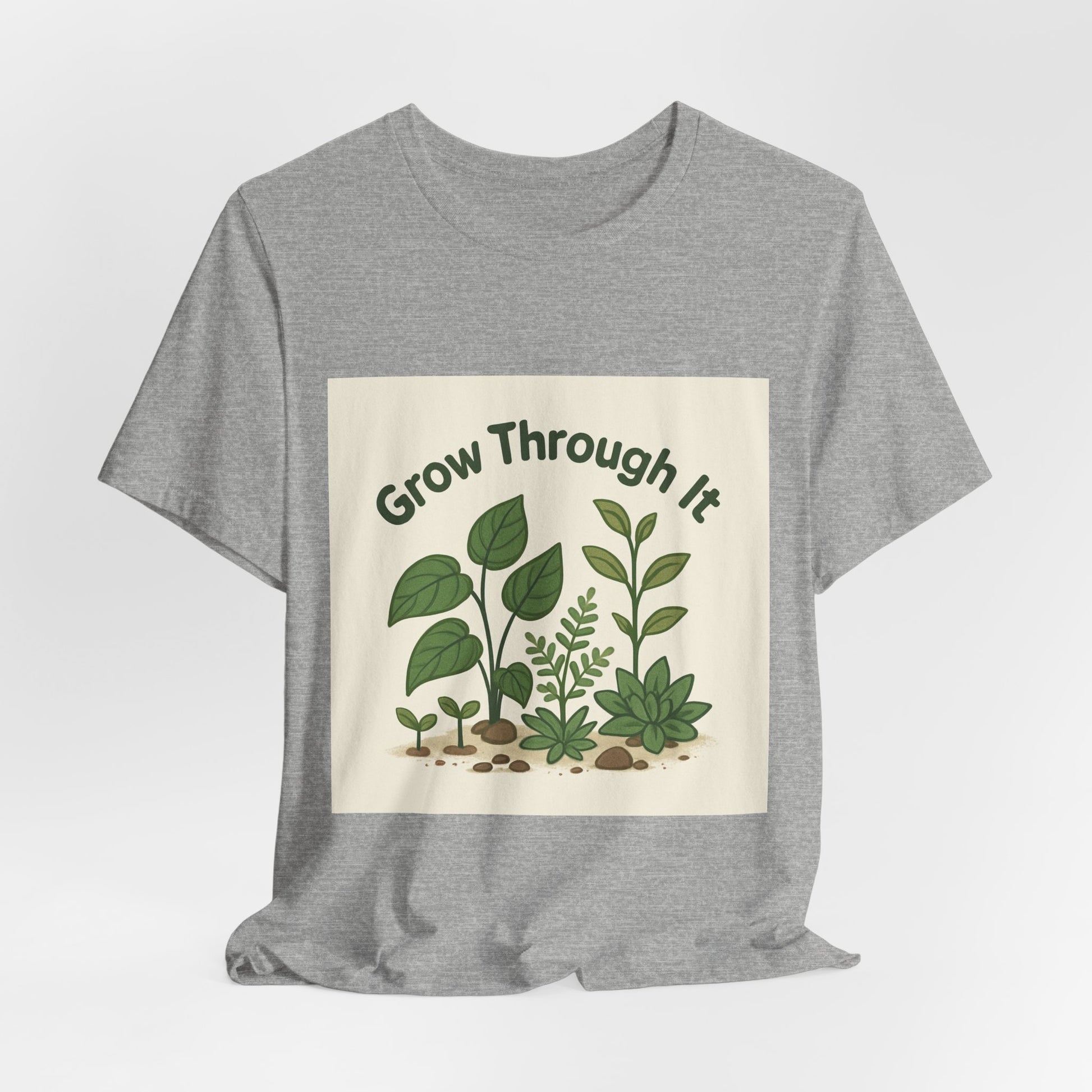 Soft, breathable, and thoughtfully made, this tee brings a quiet, nurturing energy to everyday wear. A warm, earth-toned square print features a cluster of growing plants with the gentle phrase “Grow Through It,” inviting calm and steady persistence. The lightweight Airlume combed cotton feels airy against the skin and layers easily under jackets or over a long-sleeve on cooler mornings. Subtle details like a ribbed collar, shoulder tape, and side seams keep the fit tidy and long-lasting, while a tear-away label prevents irritation. Sustainably produced with REACH-certified materials and ethical manufacturing, it’s a wearable reminder to keep growing—one slow, steady day at a time.