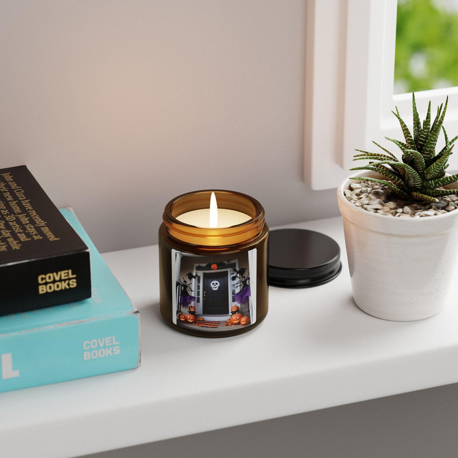Halloween Scented Soy Candle, Cozy Home Decor, Fall Fragrance Gift, Eco-Friendly Amber Jar