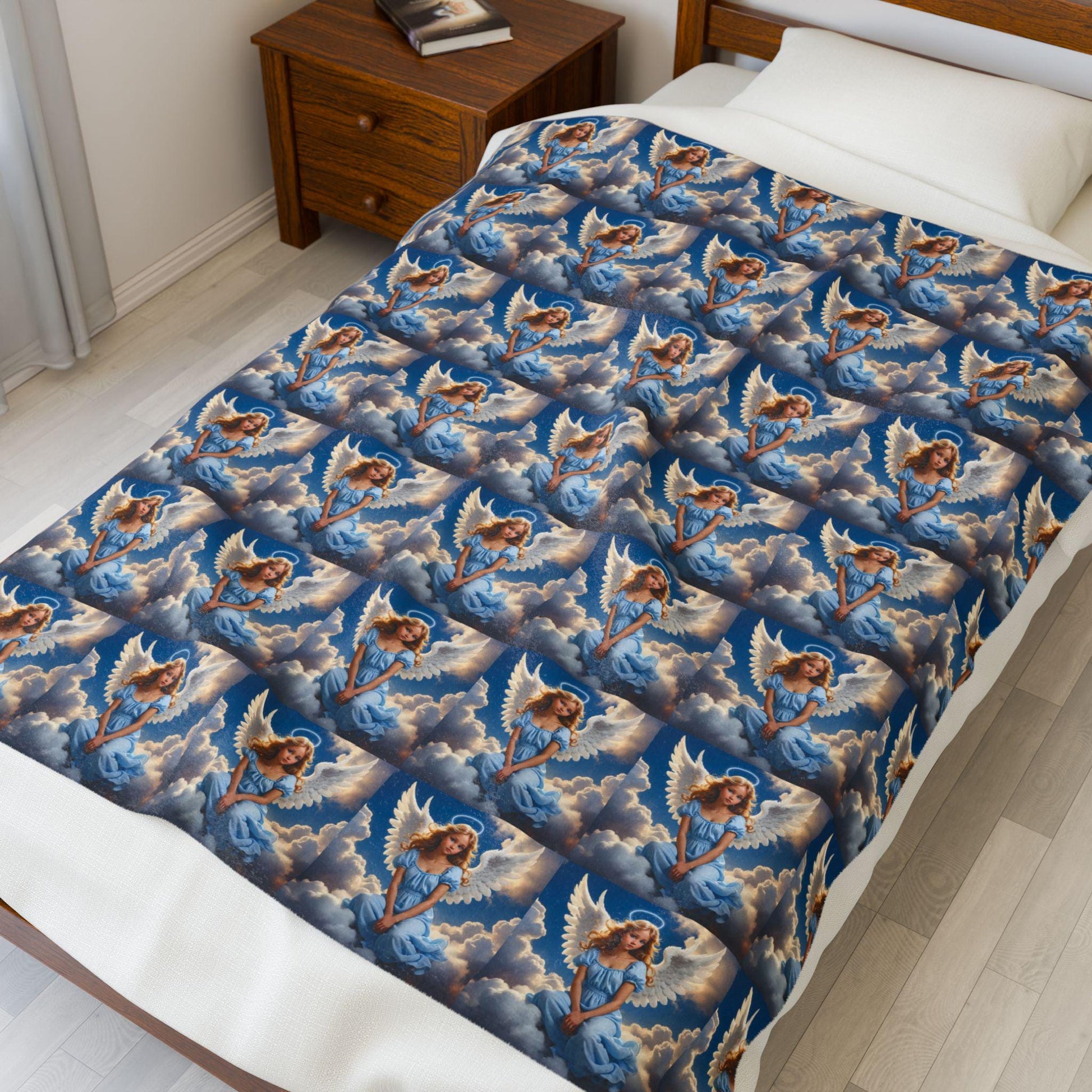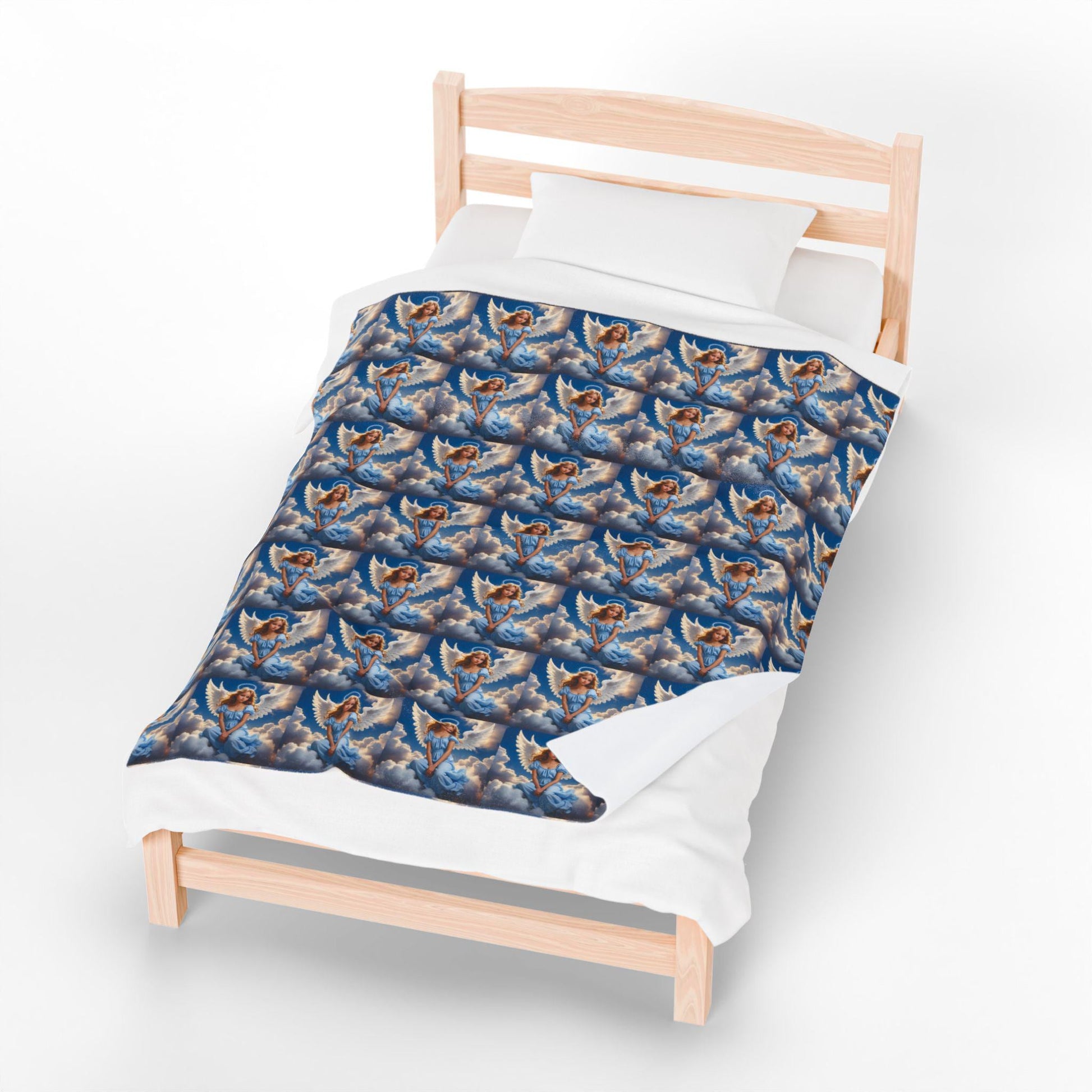 Heaven's Embrace Velveteen Plush Blanket, Cozy Throw for Nurseries, Gifts for New Parents, Baby Shower Decor, Angelic Home Accent