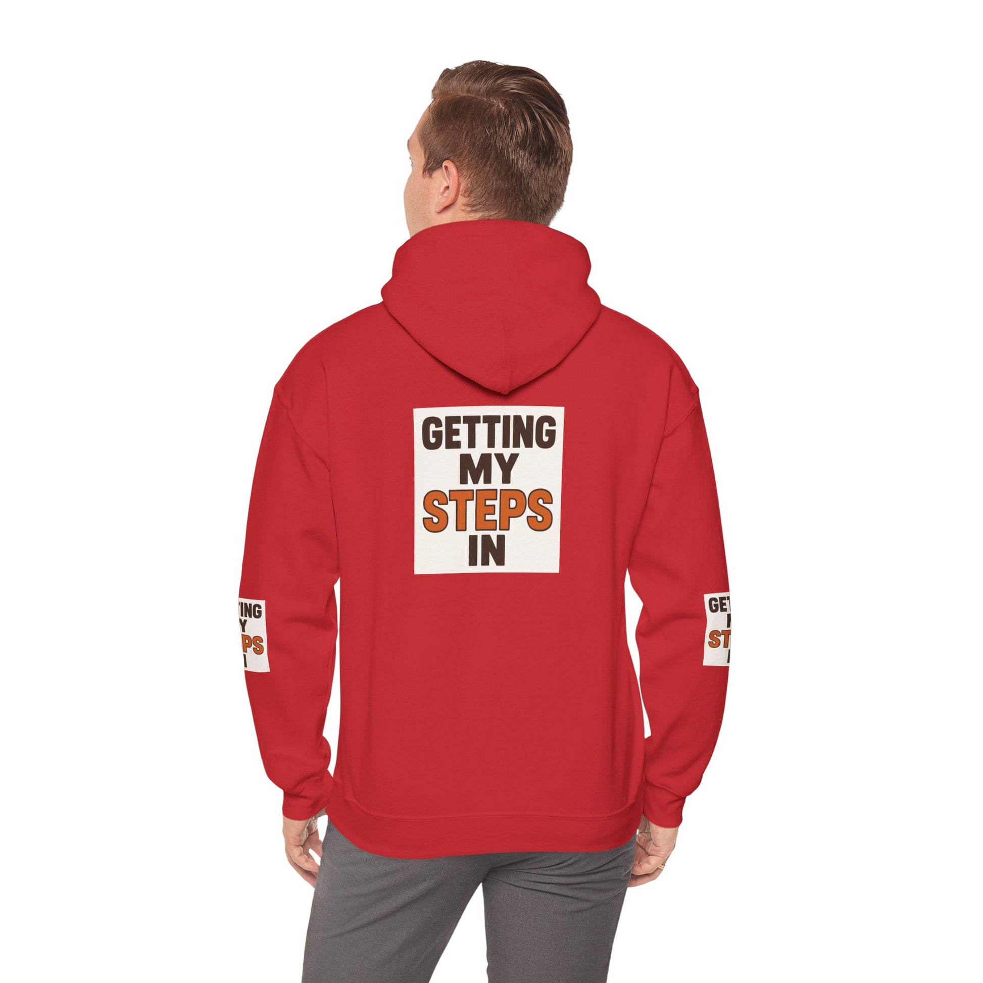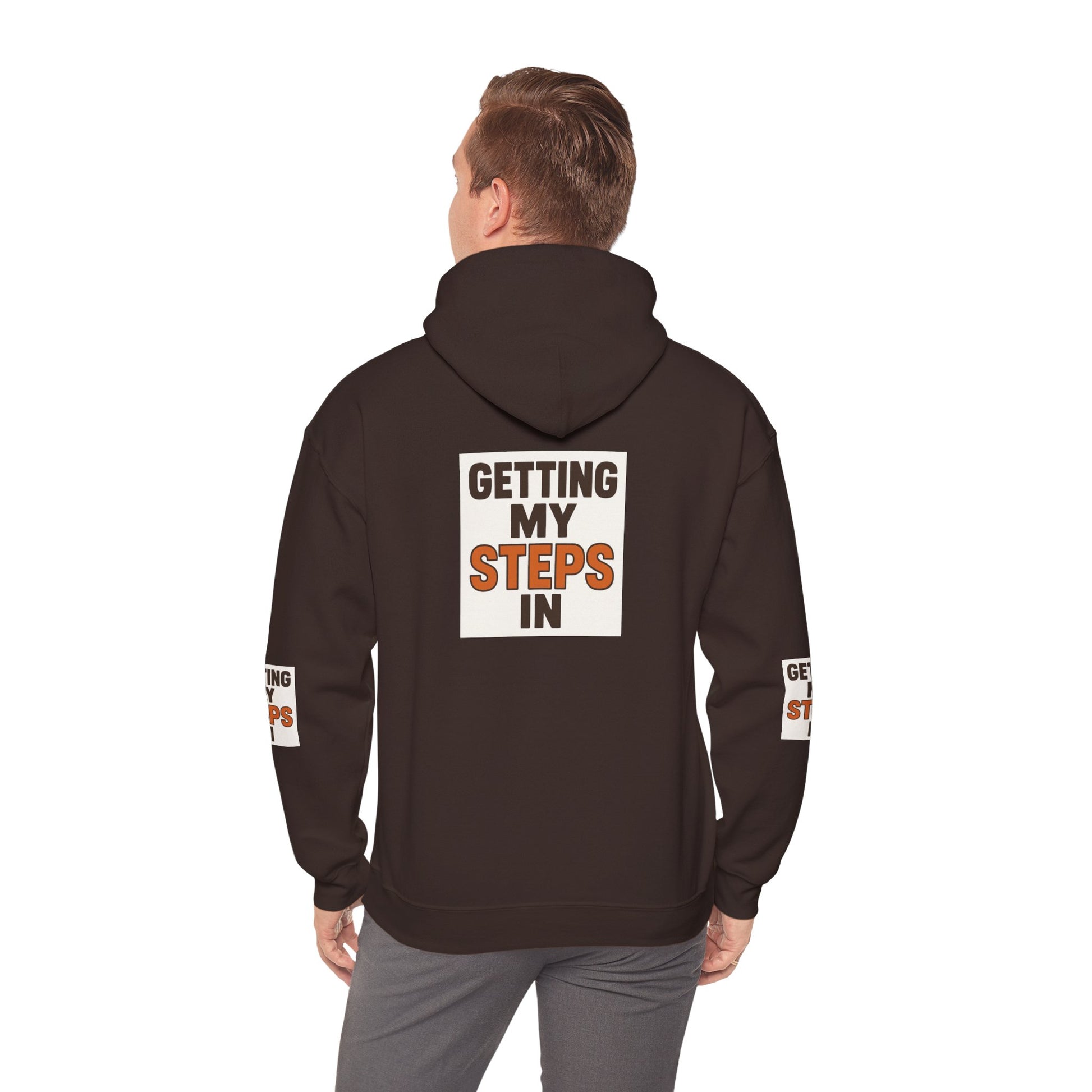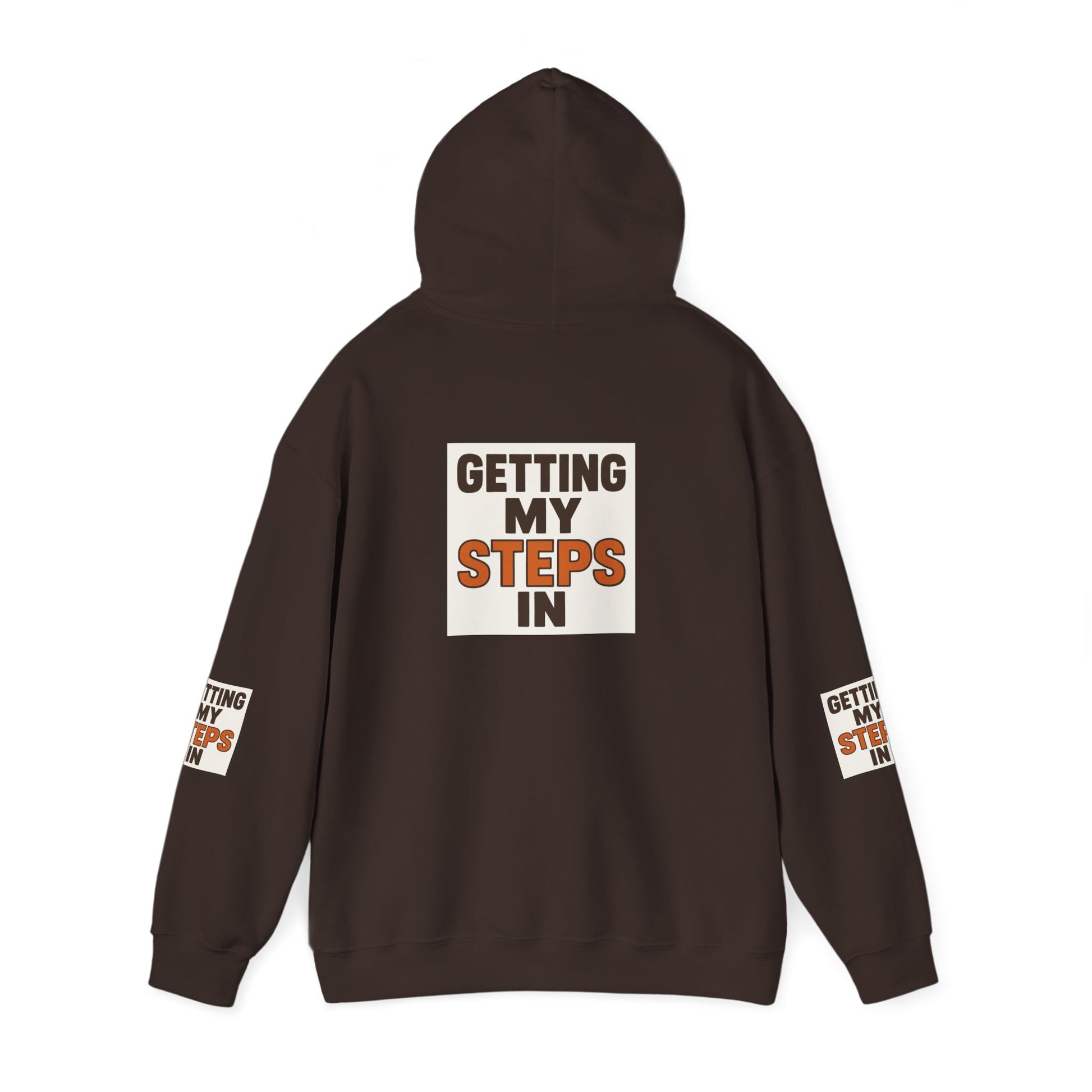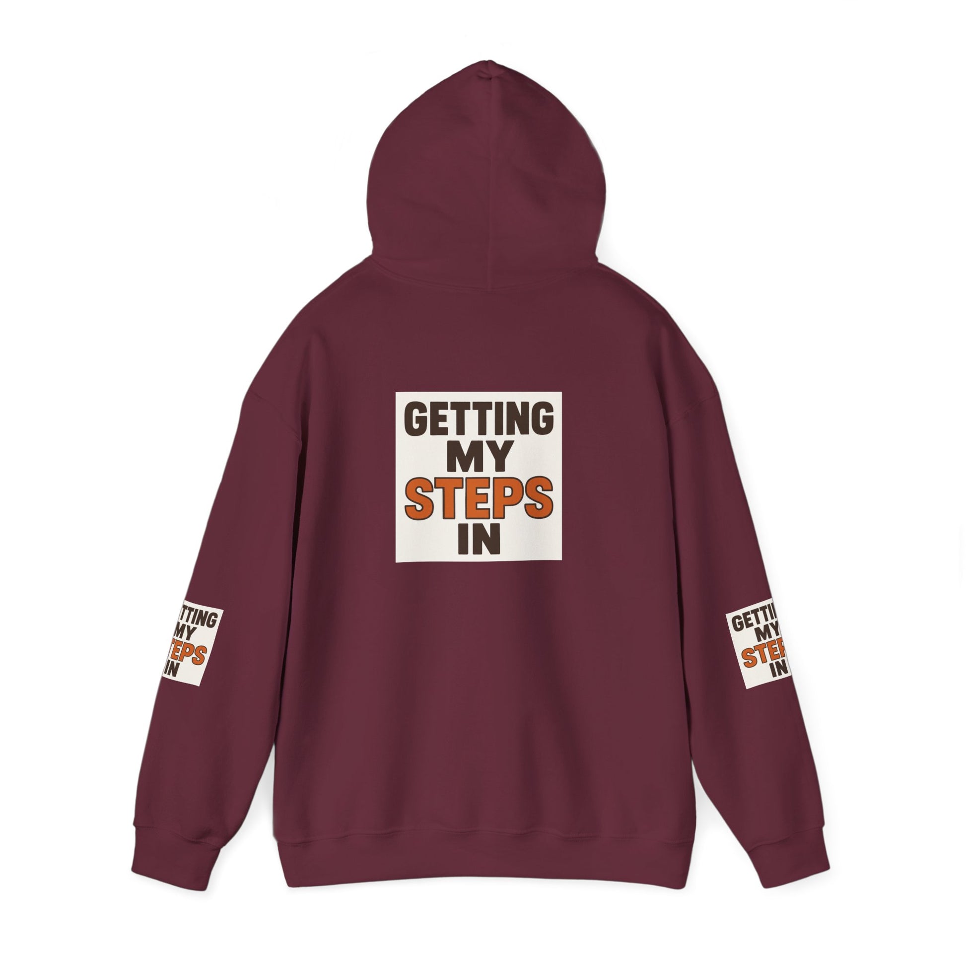 Slide into something that quietly celebrates movement. This cozy hoodie says “Getting My Steps In” in bold, warm tones — a little nudge for morning walks, lunchtime circuits, or evening strolls. It feels like a crisp breath on a cool path: roomy enough for layering, soft against the skin, and built to stand up to repeat wears. The message sits front-and-center and repeats on the sleeves, so whether you’re logging miles around the neighborhood or pacing at work, your habit feels intentional and a little stylish. Throw it on for neighborhood walks, casual coffee runs, or laid-back weekends when comfort and a subtle confidence matter.