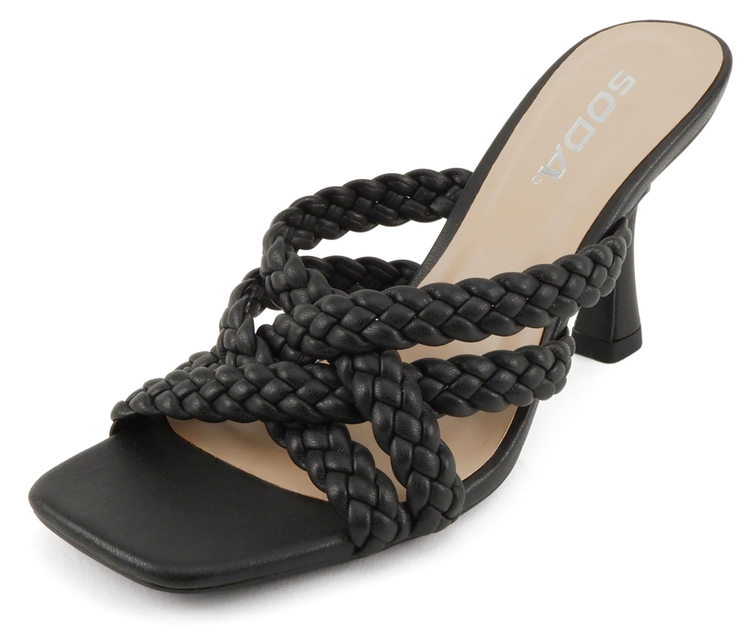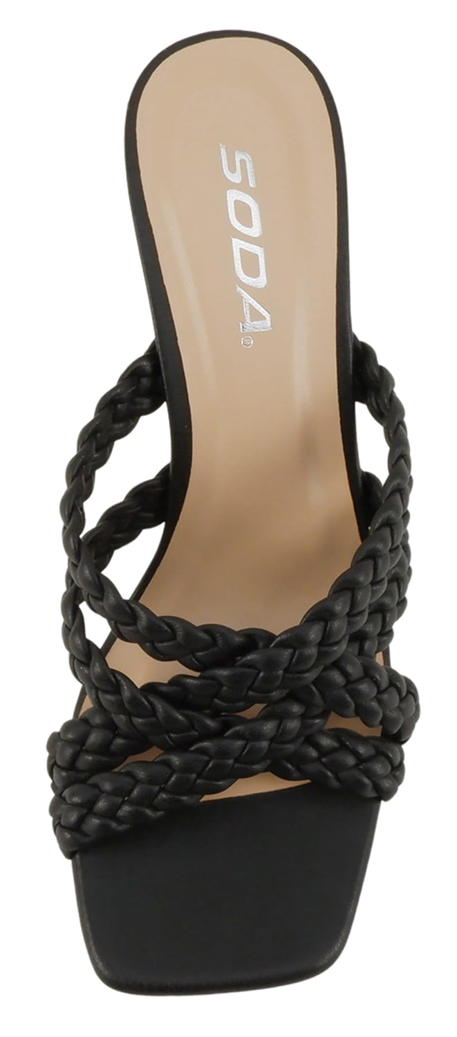 • Soda Shoes Women Stiletto High Heeled Sandal Braided Multi Strap Square Open Toe KELLAN-S