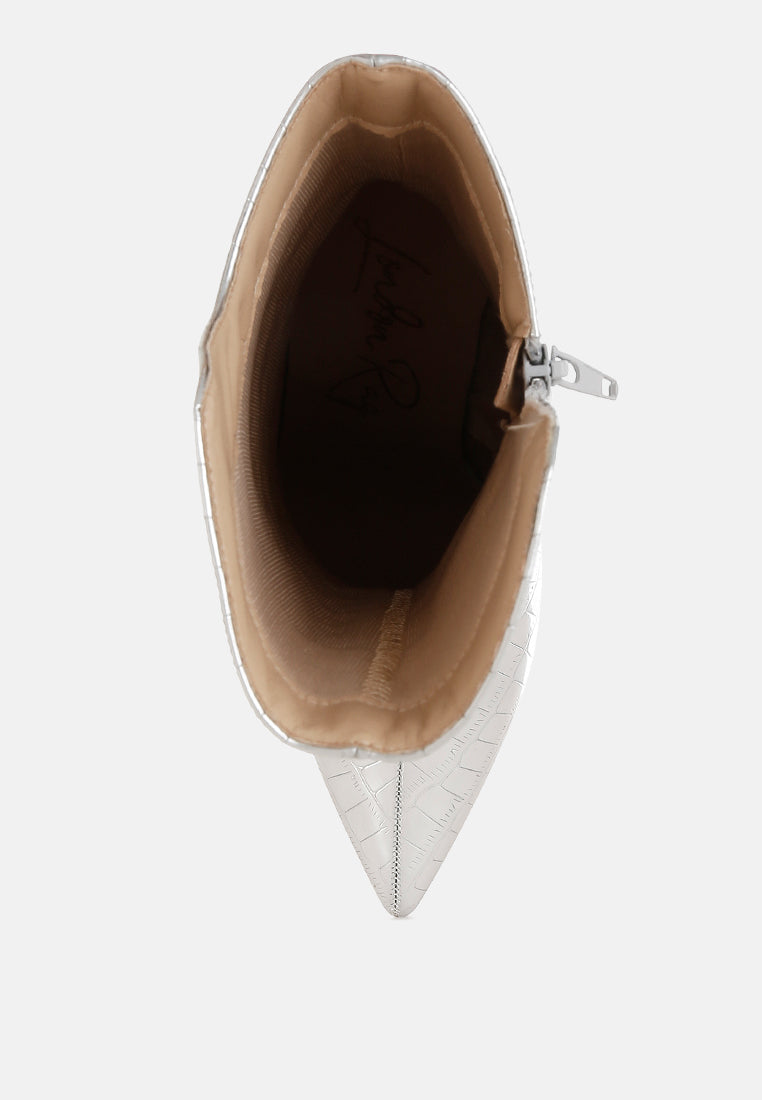 Kultrus Croco Stiletto Heel Mid-Calf Boots