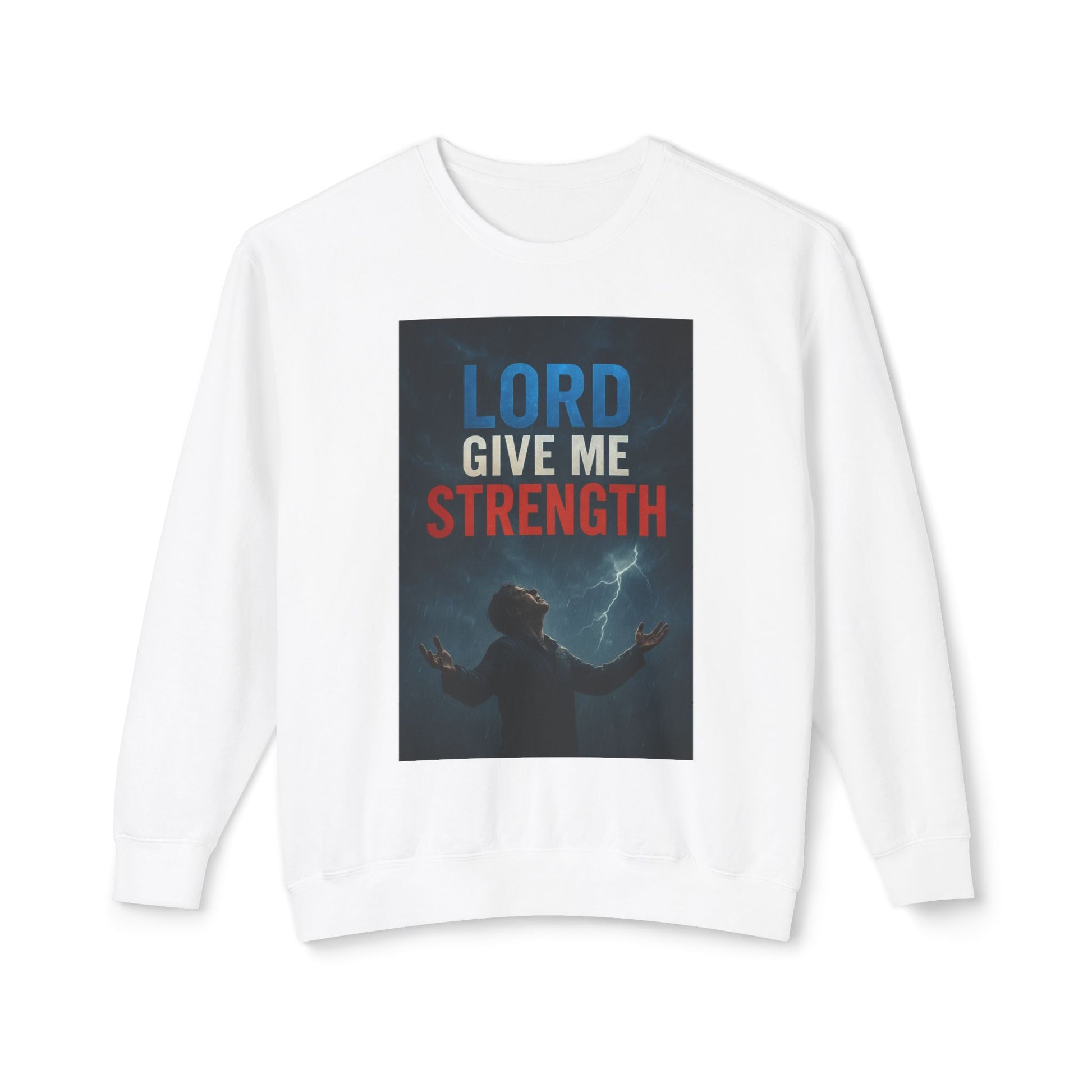 Soft, light, and quietly bold — this crewneck wraps you in calm and conviction. A lone figure lifts their hands beneath a storm-lit sky while the words “LORD GIVE ME STRENGTH” rise in raw, clear type. Wear it when you want your faith to be seen without shouting: during early morning prayers, on a long drive home, or while gathering with a small church group. The relaxed cut and breathable cotton feel easy against the skin, letting you move freely through errands, volunteer shifts, or reflective moments. It’s a subtle statement of resilience for anyone carrying responsibility, seeking solace, or holding steady through hardship.