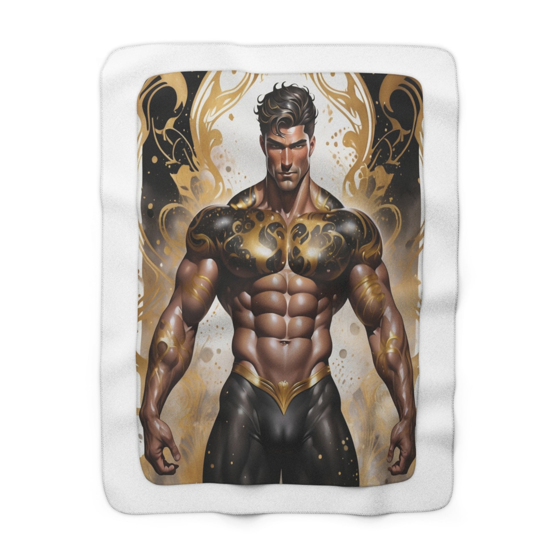 Sink into a moment of bold comfort. This plush sherpa fleece blanket wraps you in velvety softness while showcasing a striking, heroic figure rendered in rich golds and deep tones. It feels like a warm exhale after a long day — heavy enough to hold you, light enough to carry to the couch. Bring this blanket when you want to lean into cinematic warmth during late-night reading, post-work relaxation, or watching action-packed films. The luxurious sherpa backing invites you to curl up and stay awhile, and the hemmed edges give the piece a finished, well-loved look that keeps its shape through regular use.