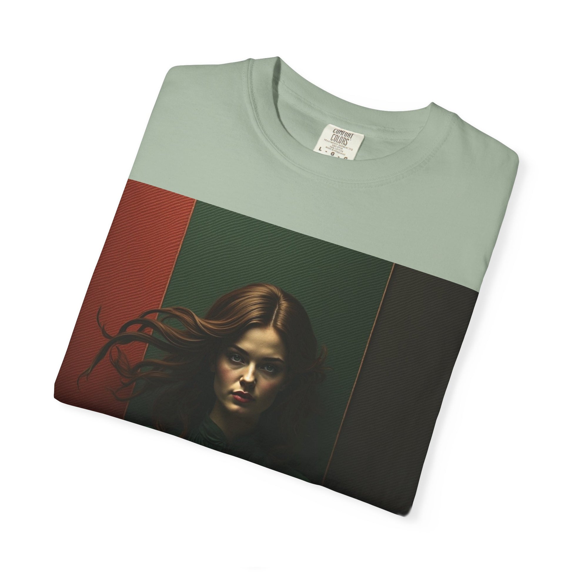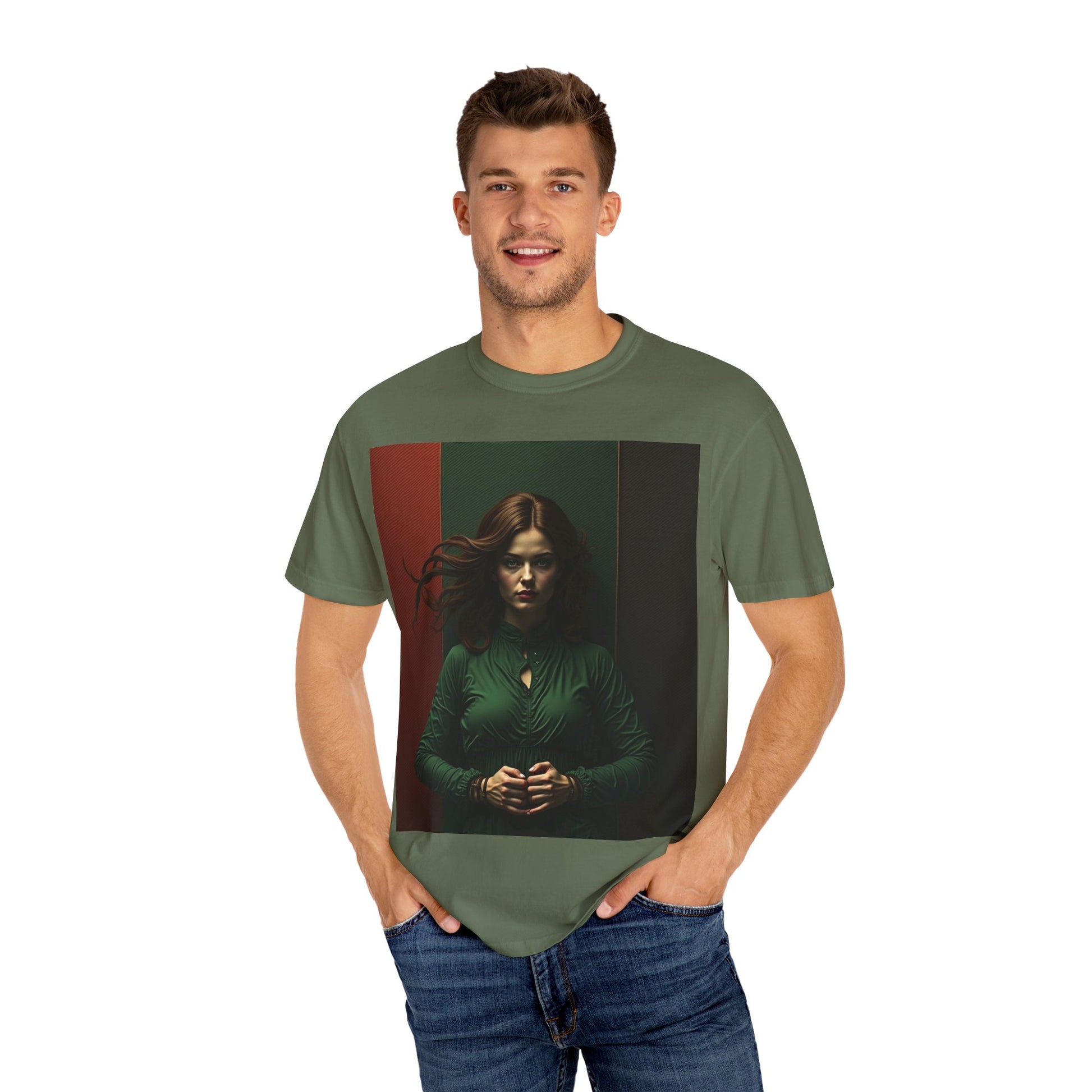 Portrait Photo Tee — Moody Green Woman Graphic T-Shirt