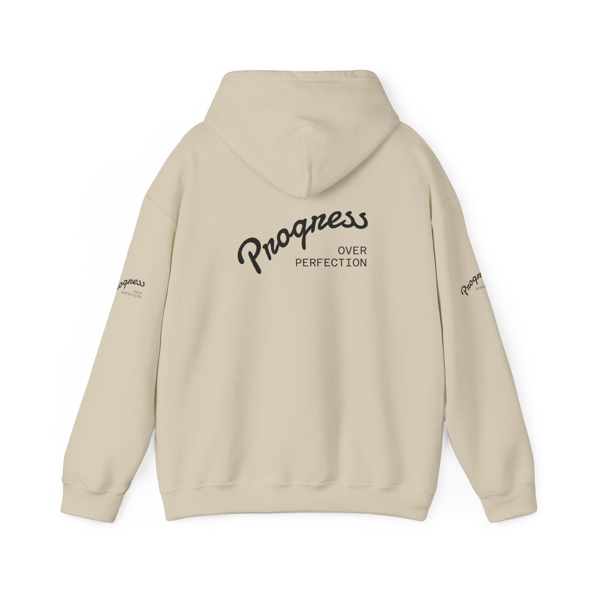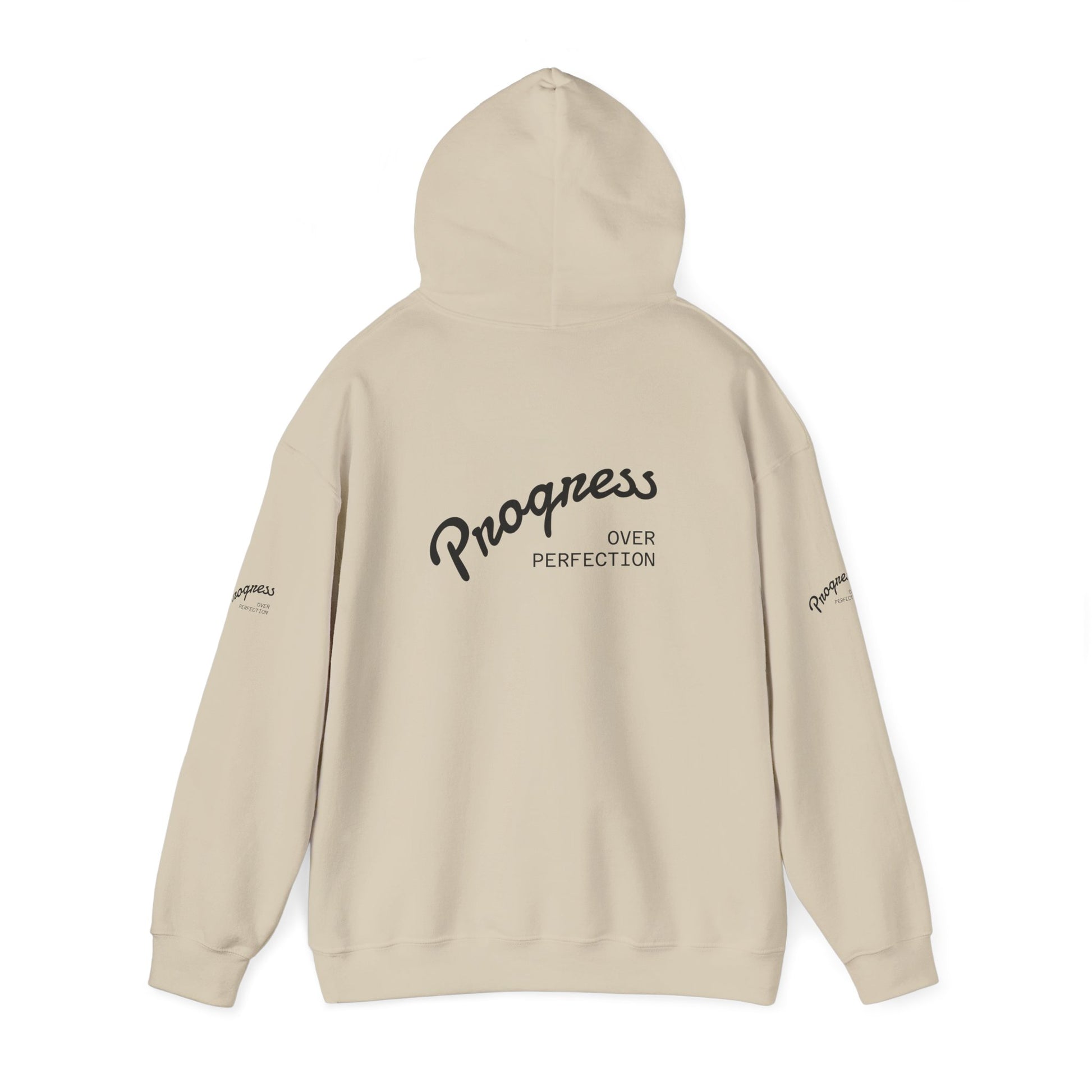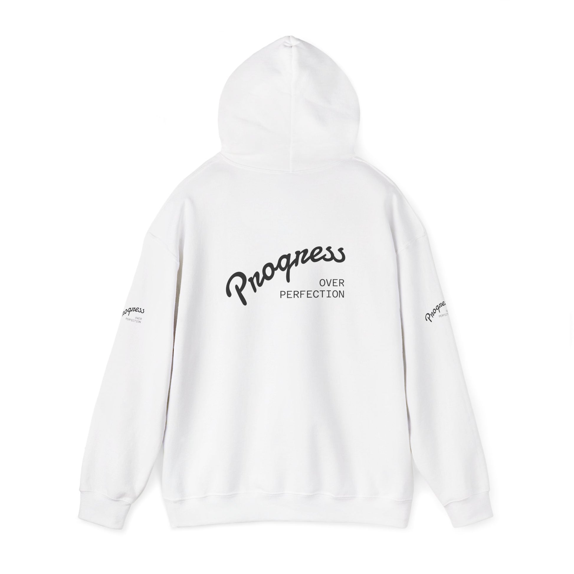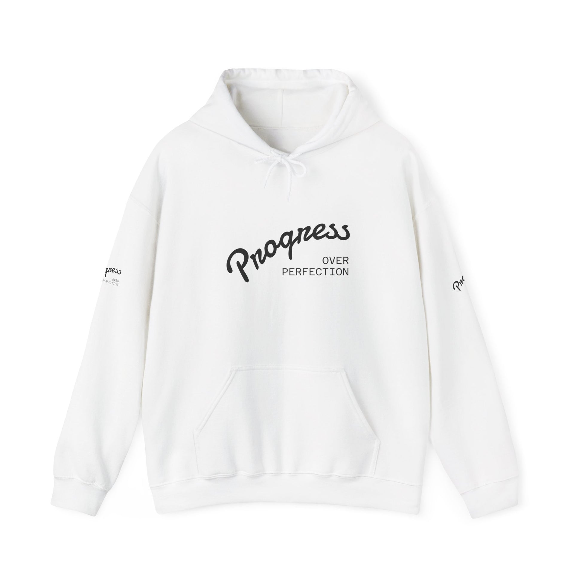 Progress Over Perfection Hoodie — Inspirational Minimalist White Pullover