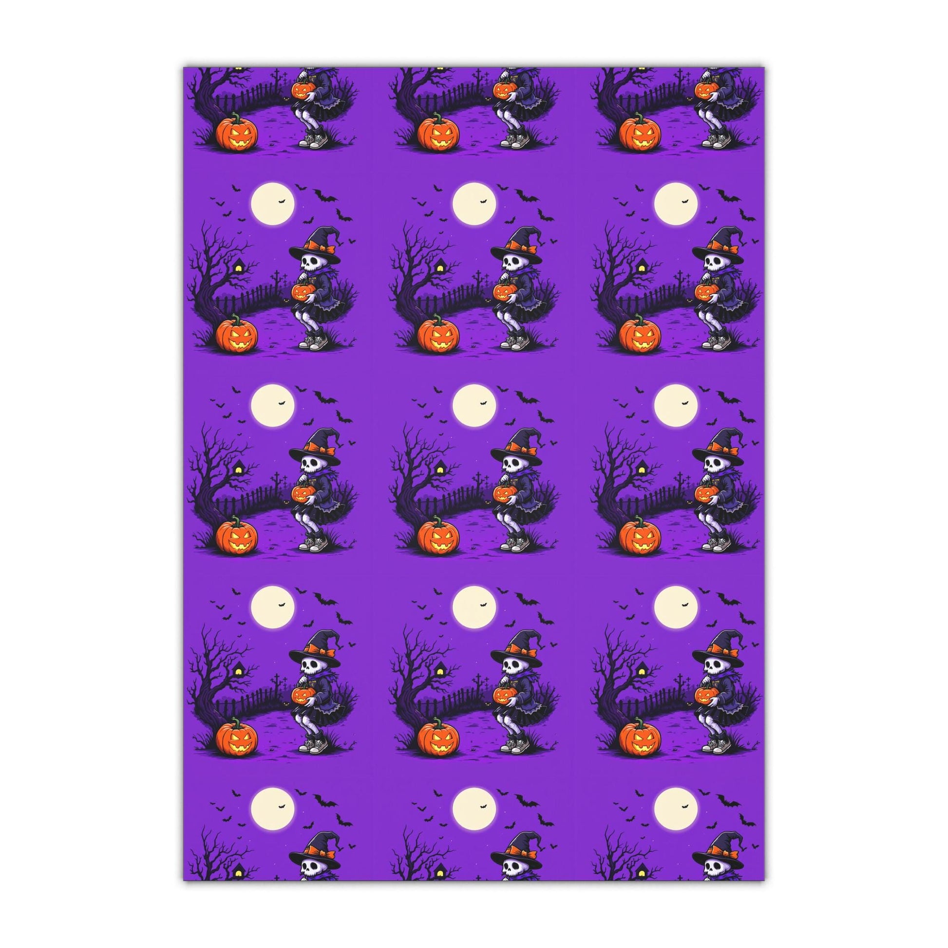 Purple Halloween Gift Wrap Sheets: Spooky Skull Design