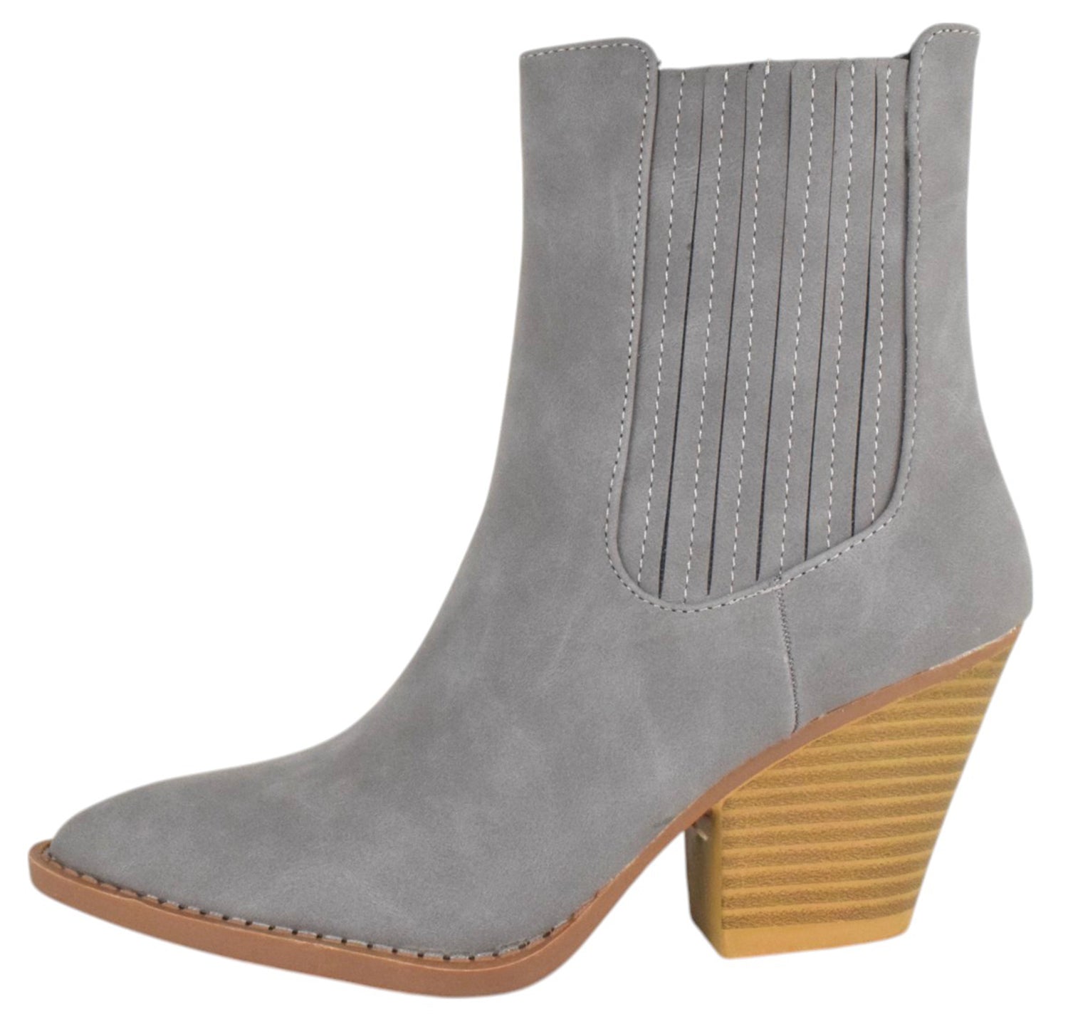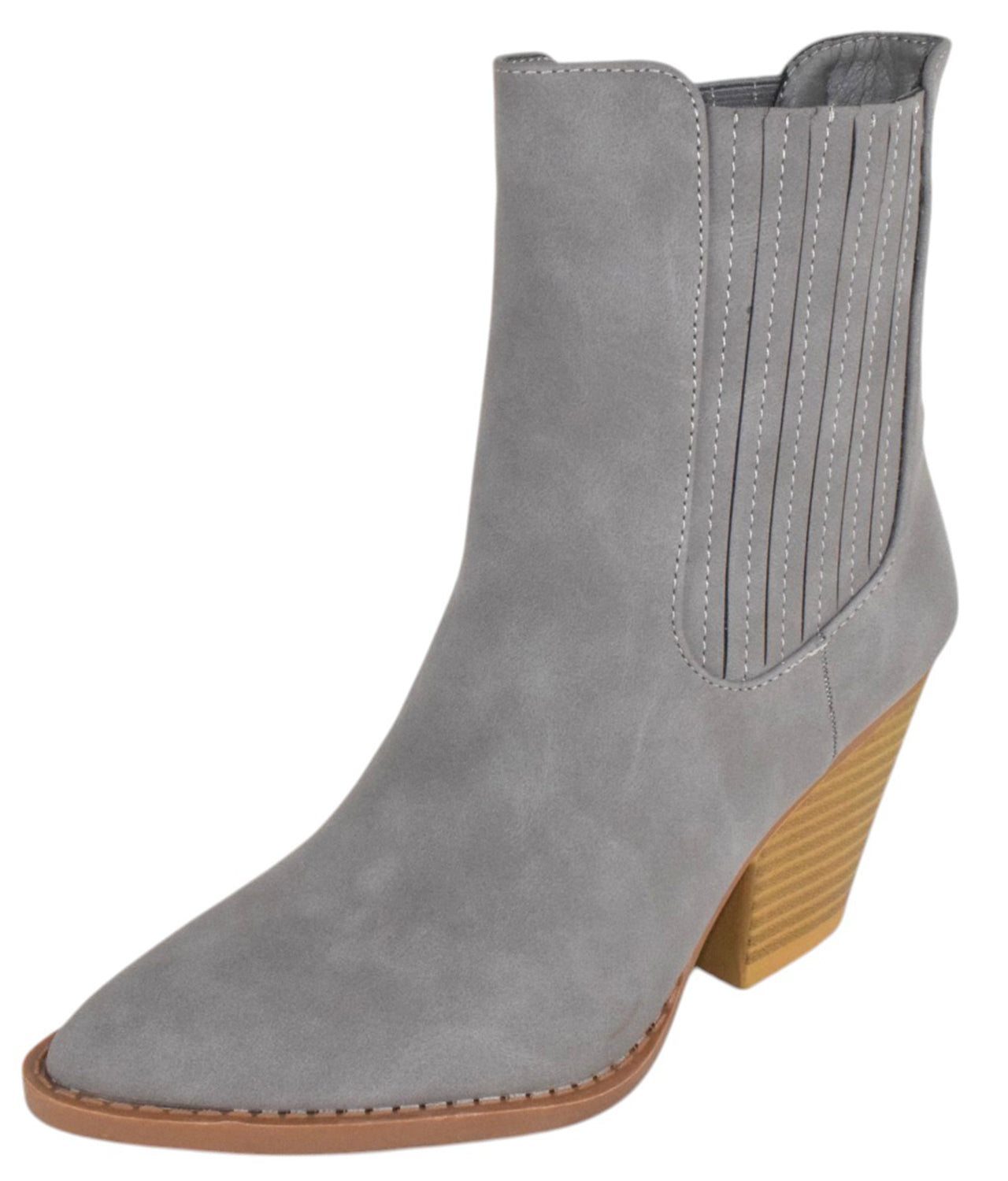 • Forever Women Ankle Western Boots Stacked Block Heels elastic Opening Cowboy Booties Pointed Toe RIVER-24