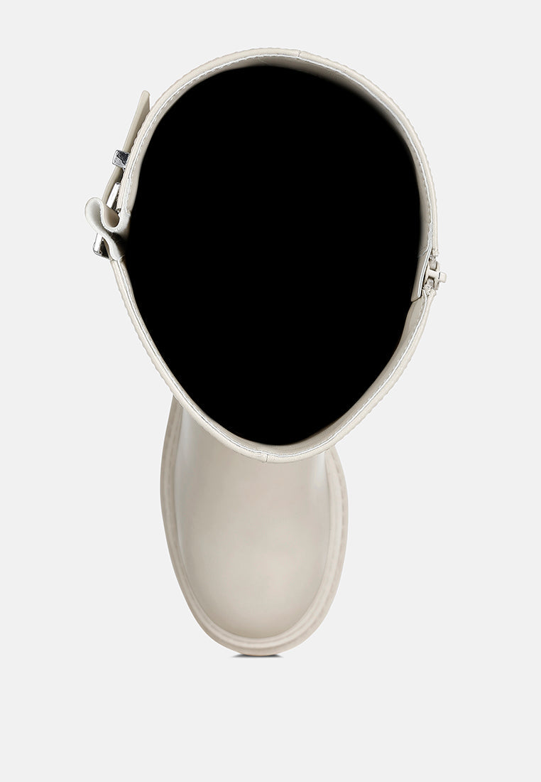 The harness boots have a rustic aesthetic with the buckle belt detail while the soft cushion insole gives them a relaxed fit that cuts strain. These long winter boots with easy to wear zipper closure would pair beautifully with some faux leather or woolen skirts and eccentric tops and shirts from London Rag!