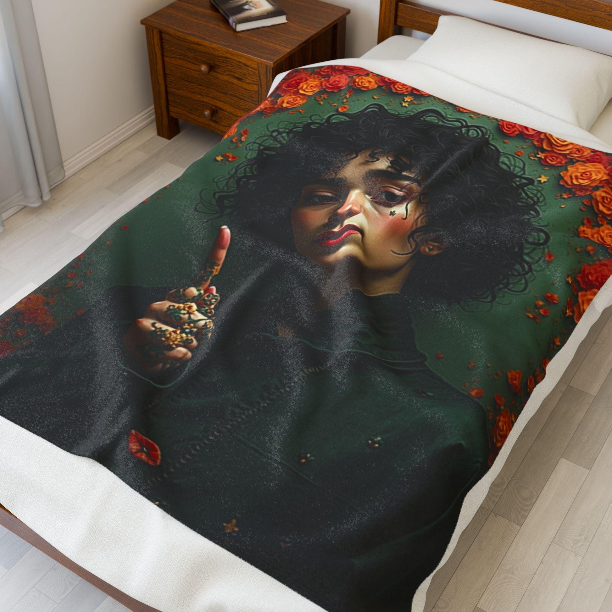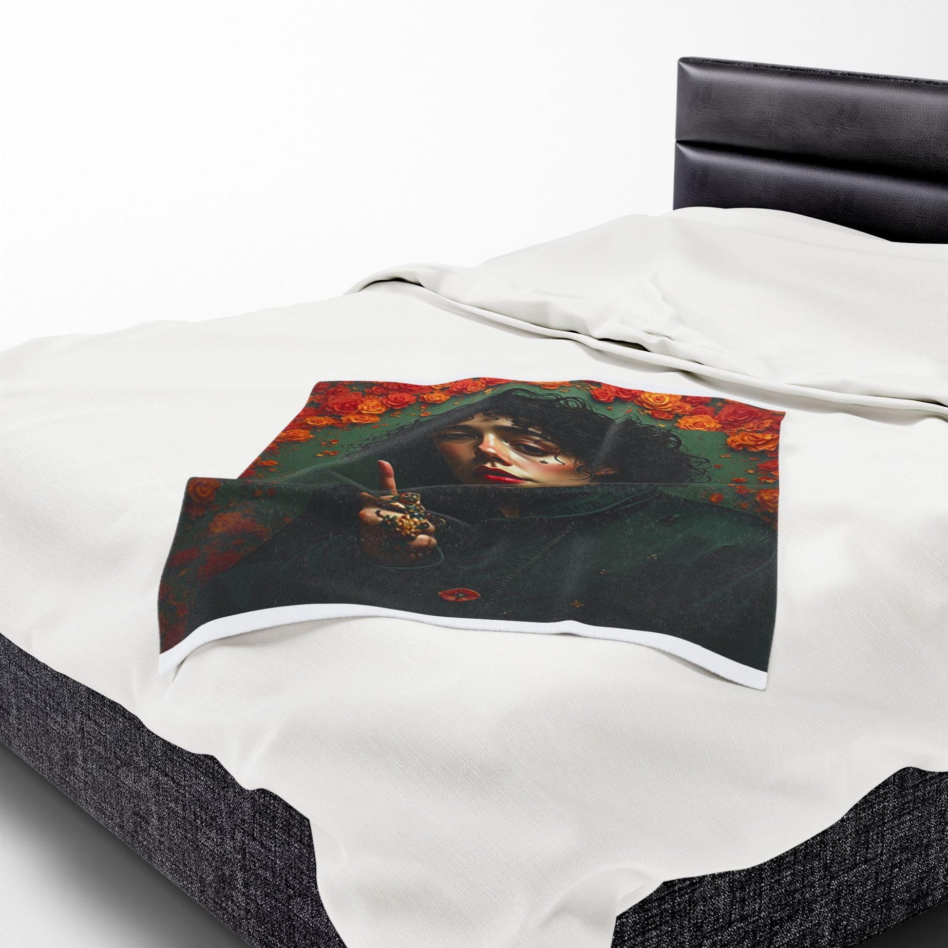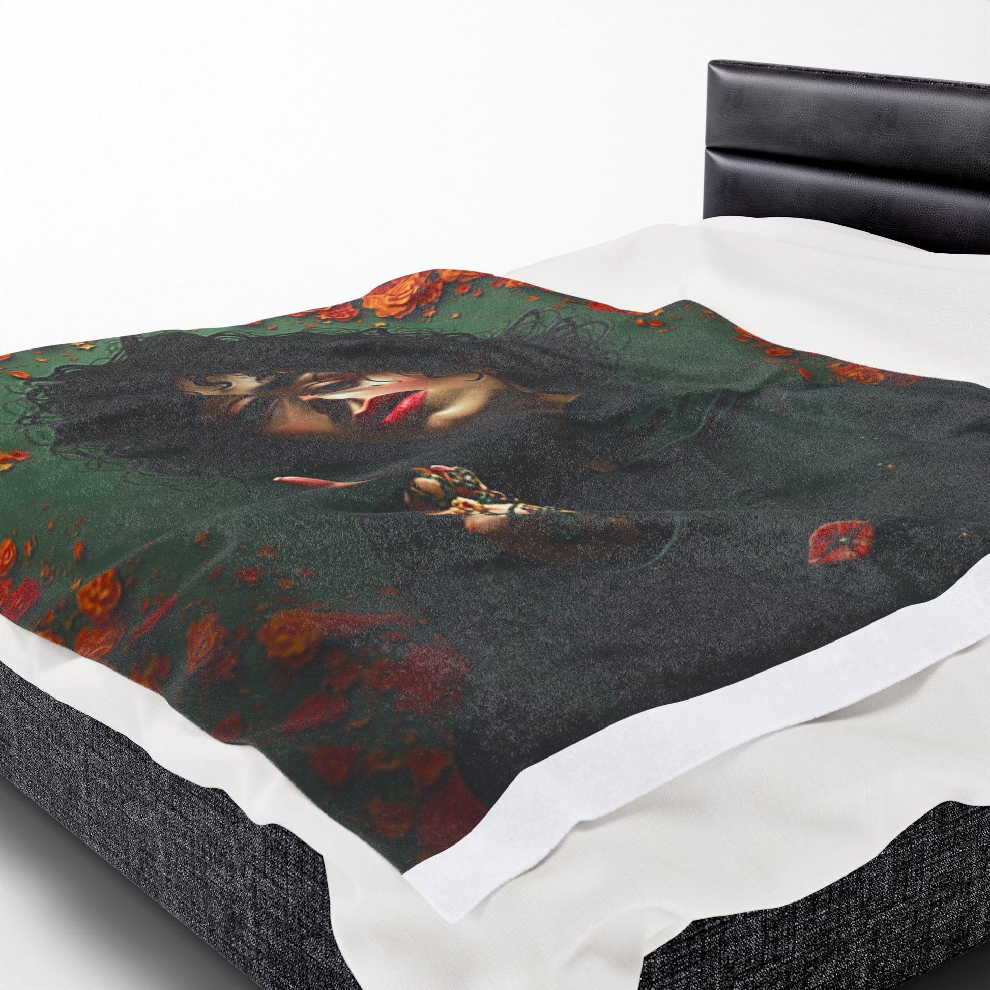 Velveteen Plush Blanket - Cozy Home Decor, Gift for Her, Floral Aesthetic, Soft Throw Blanket, Boho Style Blanket