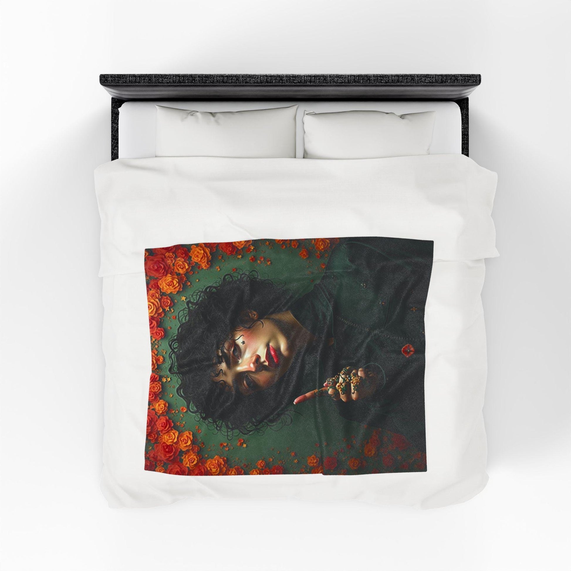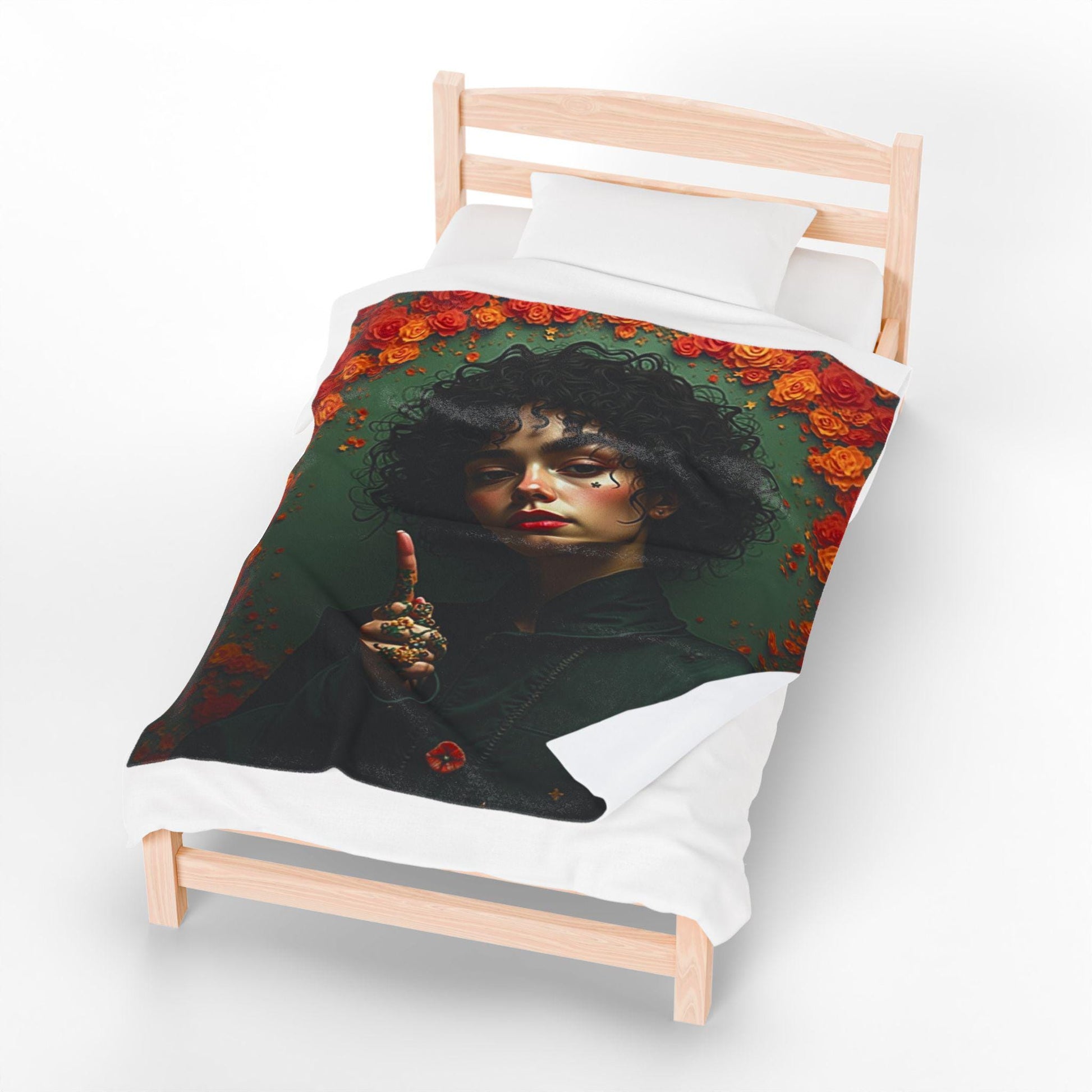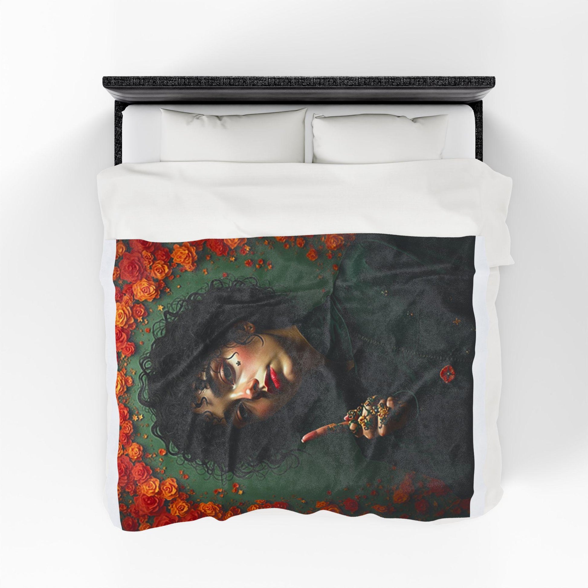 Velveteen Plush Blanket - Cozy Home Decor, Gift for Her, Floral Aesthetic, Soft Throw Blanket, Boho Style Blanket