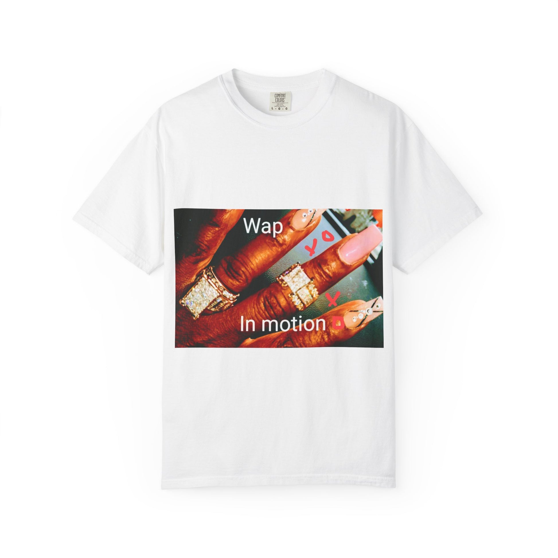 A garment-dyed cotton tee printed with a vibrant, painterly photo of brushes and tubes of paint, overlaid with the phrase “Wap In motion.” The relaxed-fit shirt feels lived-in from the first wear — soft, slightly faded color and a sturdy midweight fabric that holds its shape. It slips into an artist’s wardrobe effortlessly: wear it layered under an apron in the studio, to coffee shop sketch sessions, or out on a weekend gallery stroll. The image reads like a moment in the creative process, inviting movement and messy hands rather than polished presentation. With double-needle seams and tubular construction, this shirt is built to age well; the dye and fabric soften together, so the piece becomes more personal over time.